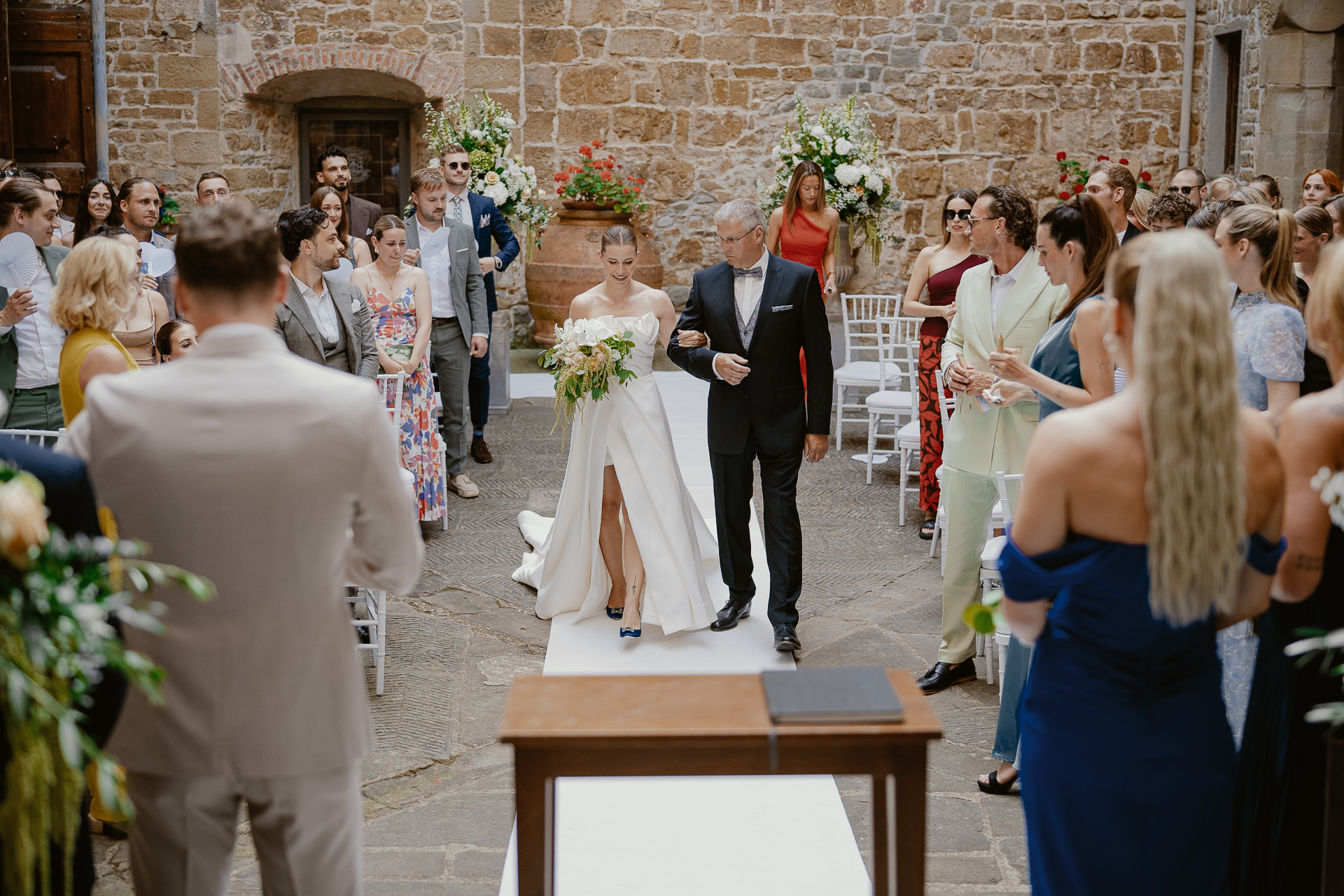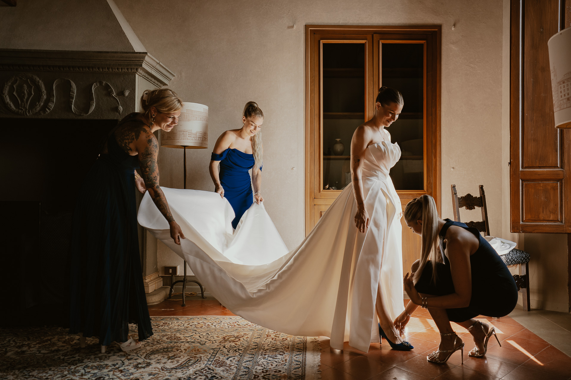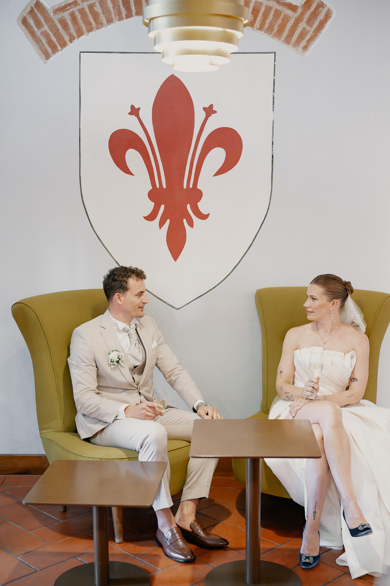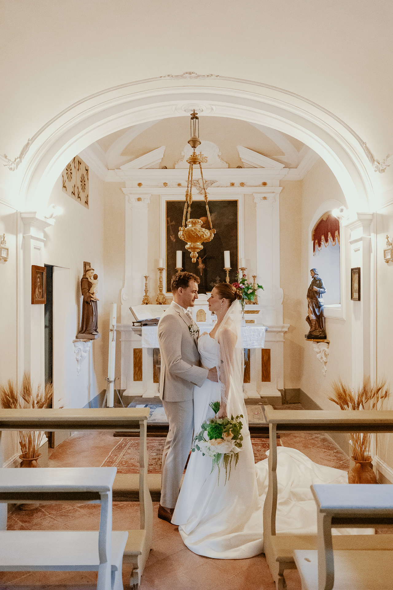 Alena and Vincent chose Villa Pitiana, an elegant Tuscan villa surrounded by olive groves and rolling hills, to celebrate their love. She, stunning and graceful, embodied the timeless beauty of Tuscany; he, deeply in love, couldn’t take his eyes off her.