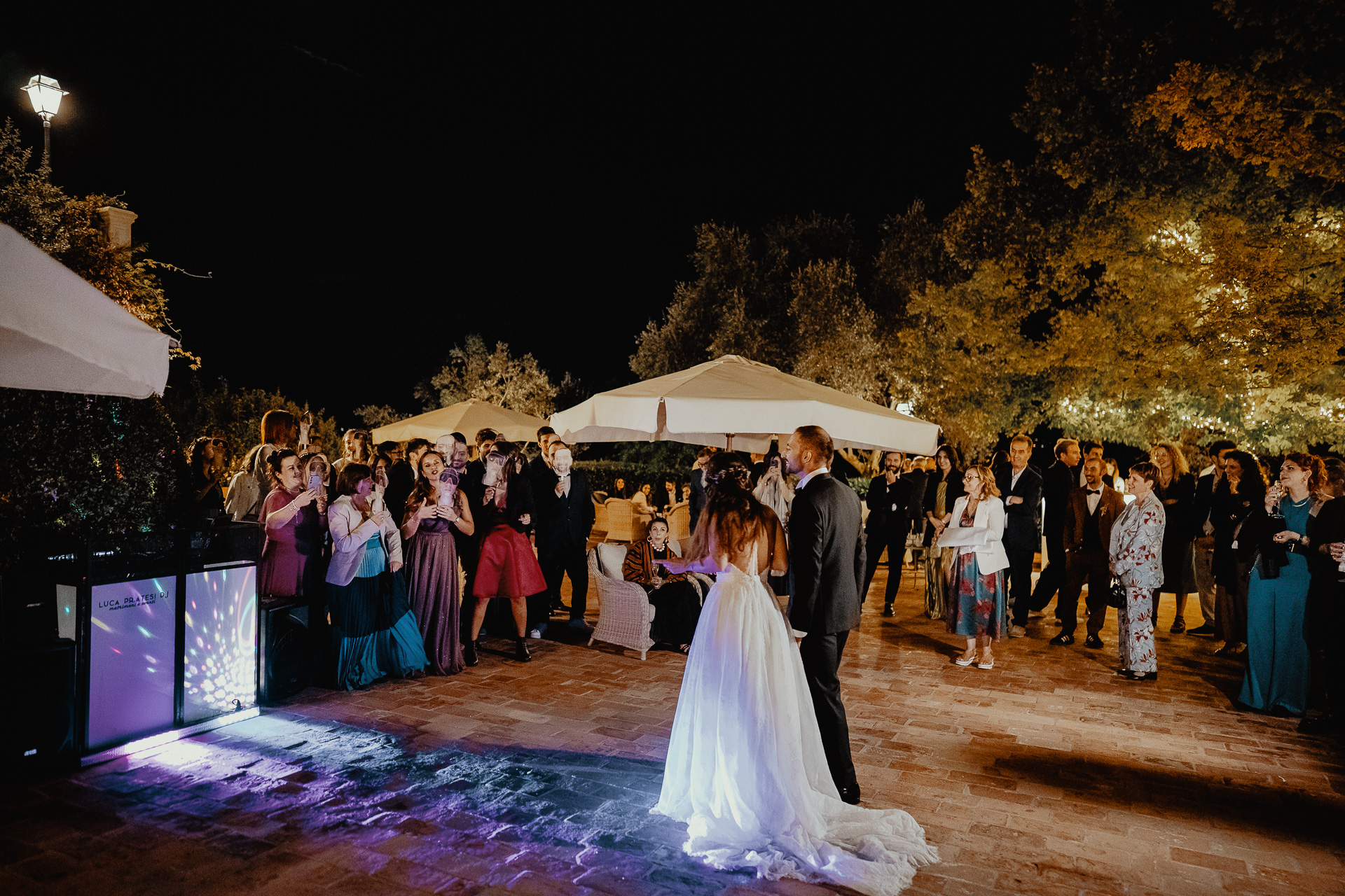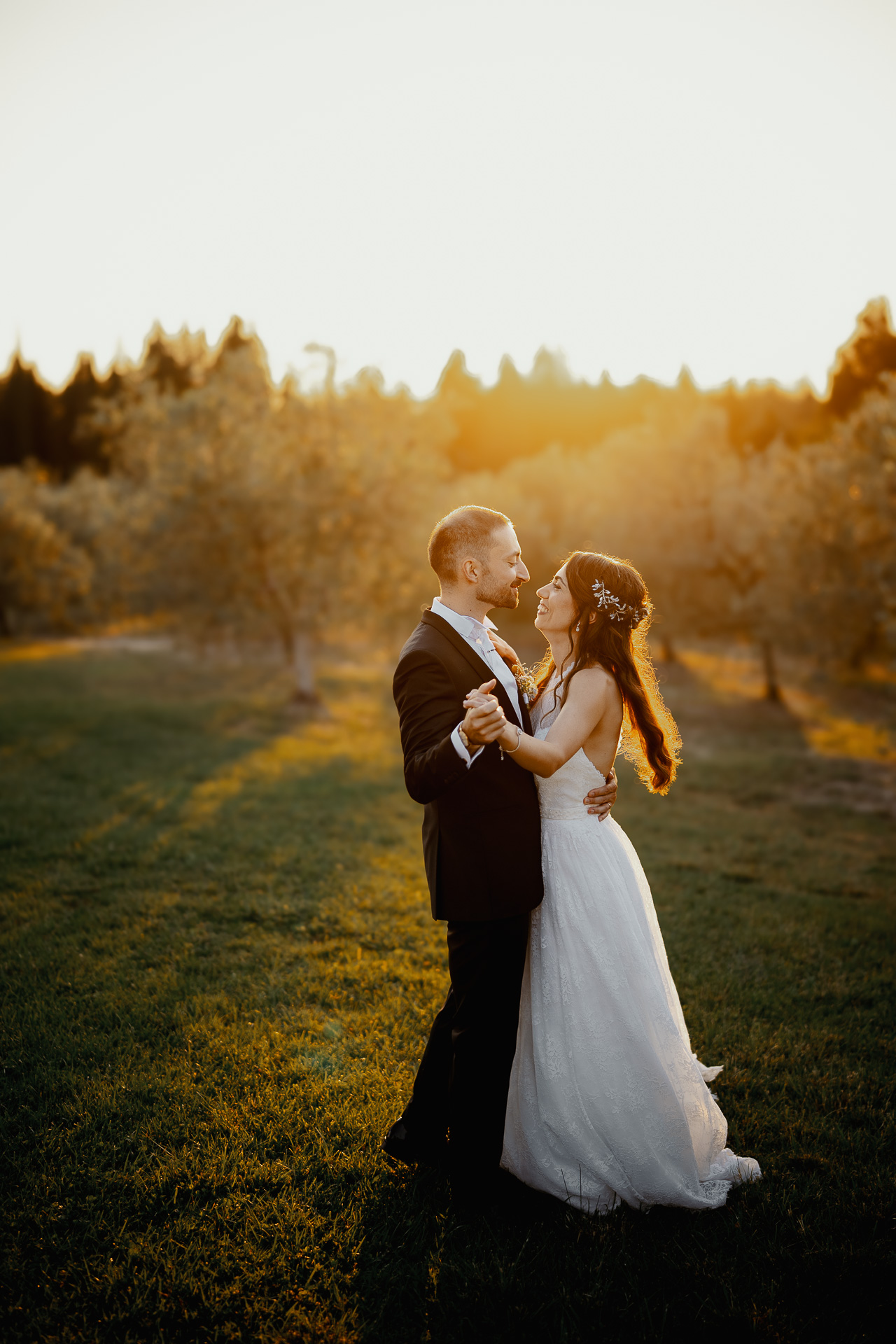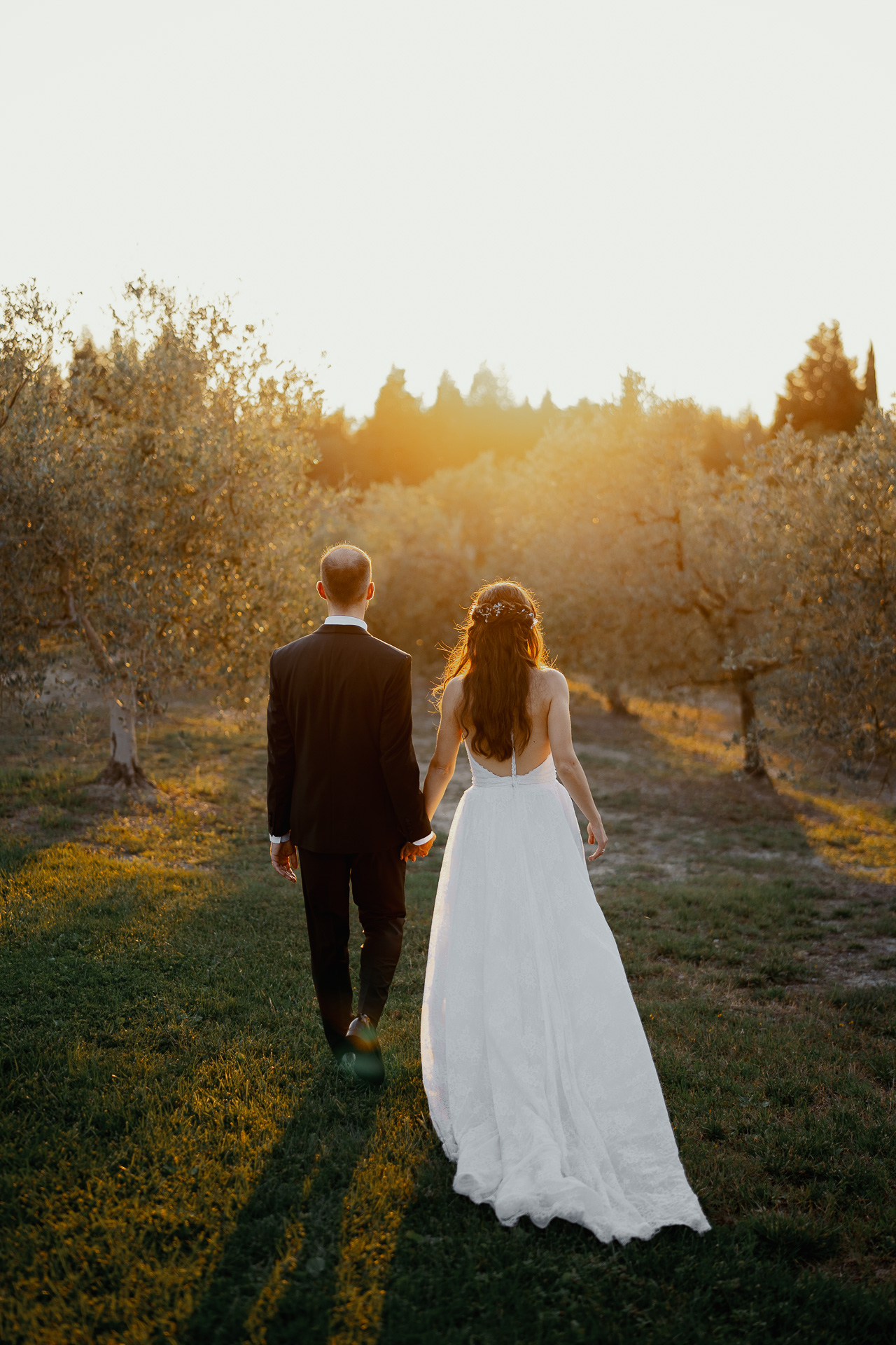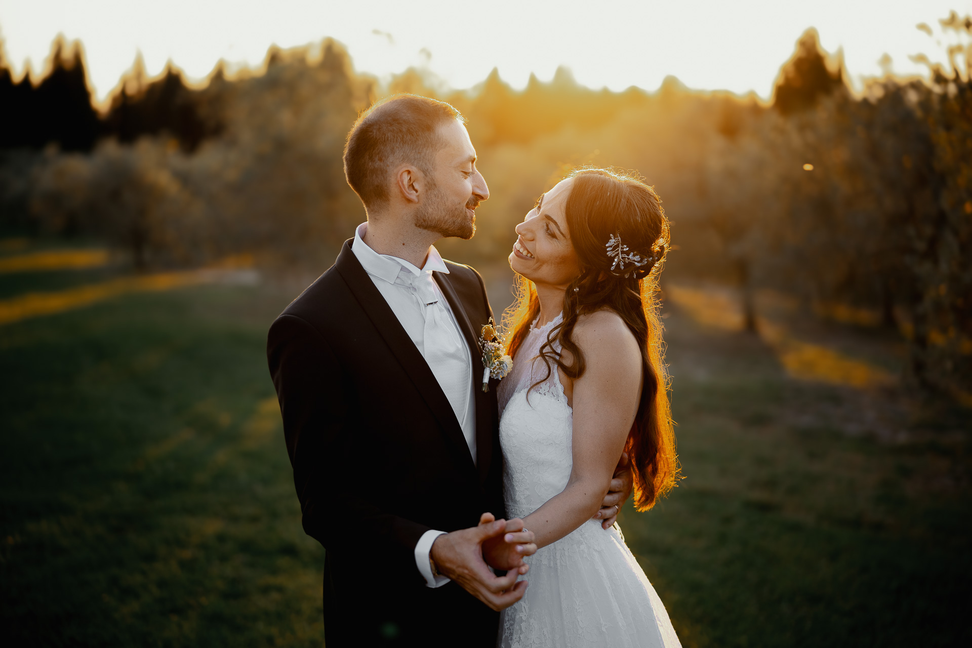 As the sun began to set, they wandered hand in hand through the villa’s olive grove, wrapped in soft light and quiet romance. The evening continued with a lively and heartfelt celebration, filled with dancing, laughter, and the kind of warmth only Tuscany can offer.
