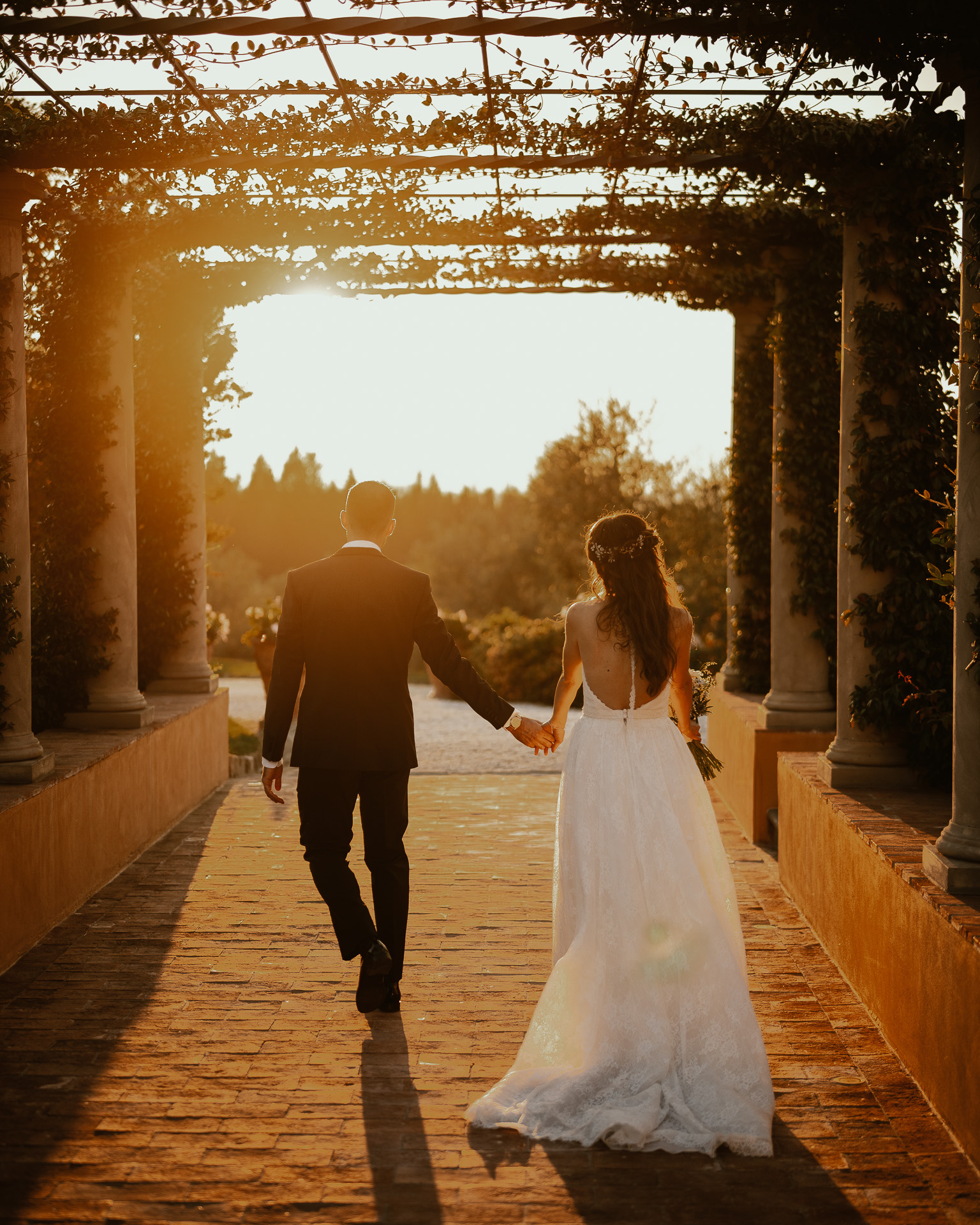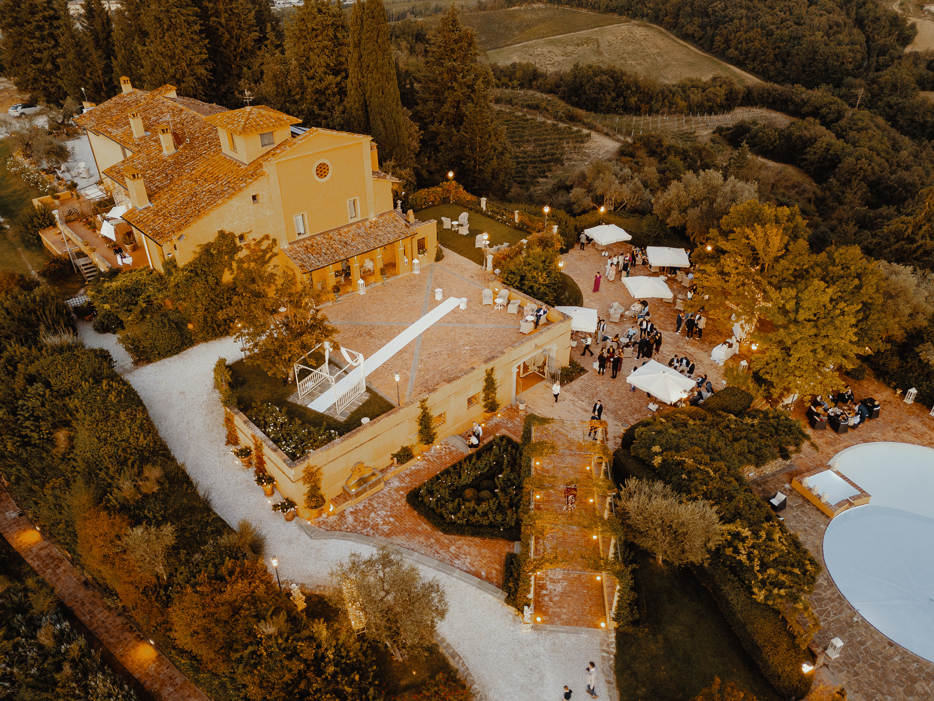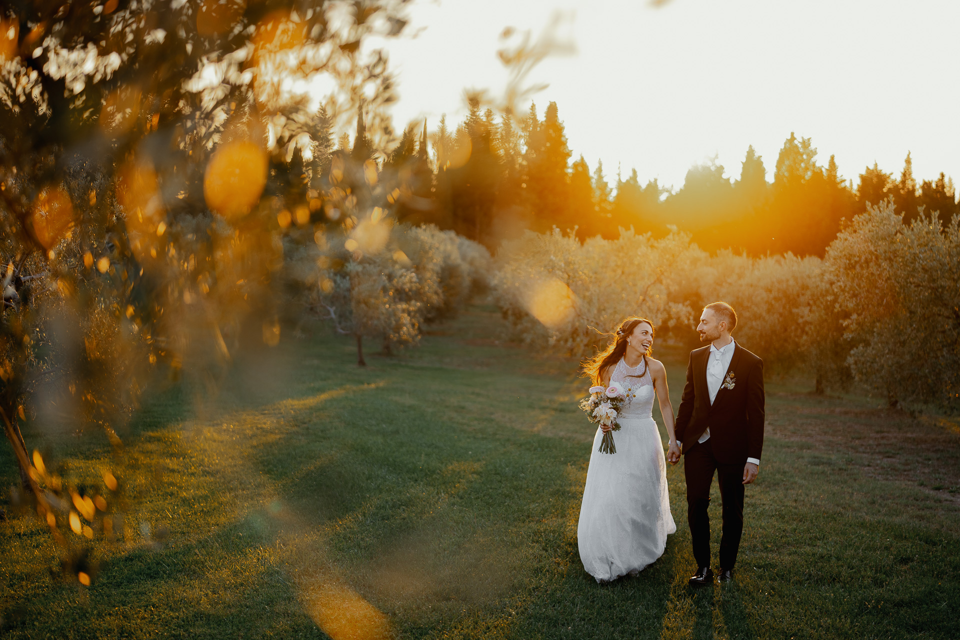 As the sun began to set, they wandered hand in hand through the villa’s olive grove, wrapped in soft light and quiet romance. The evening continued with a lively and heartfelt celebration, filled with dancing, laughter, and the kind of warmth only Tuscany can offer.