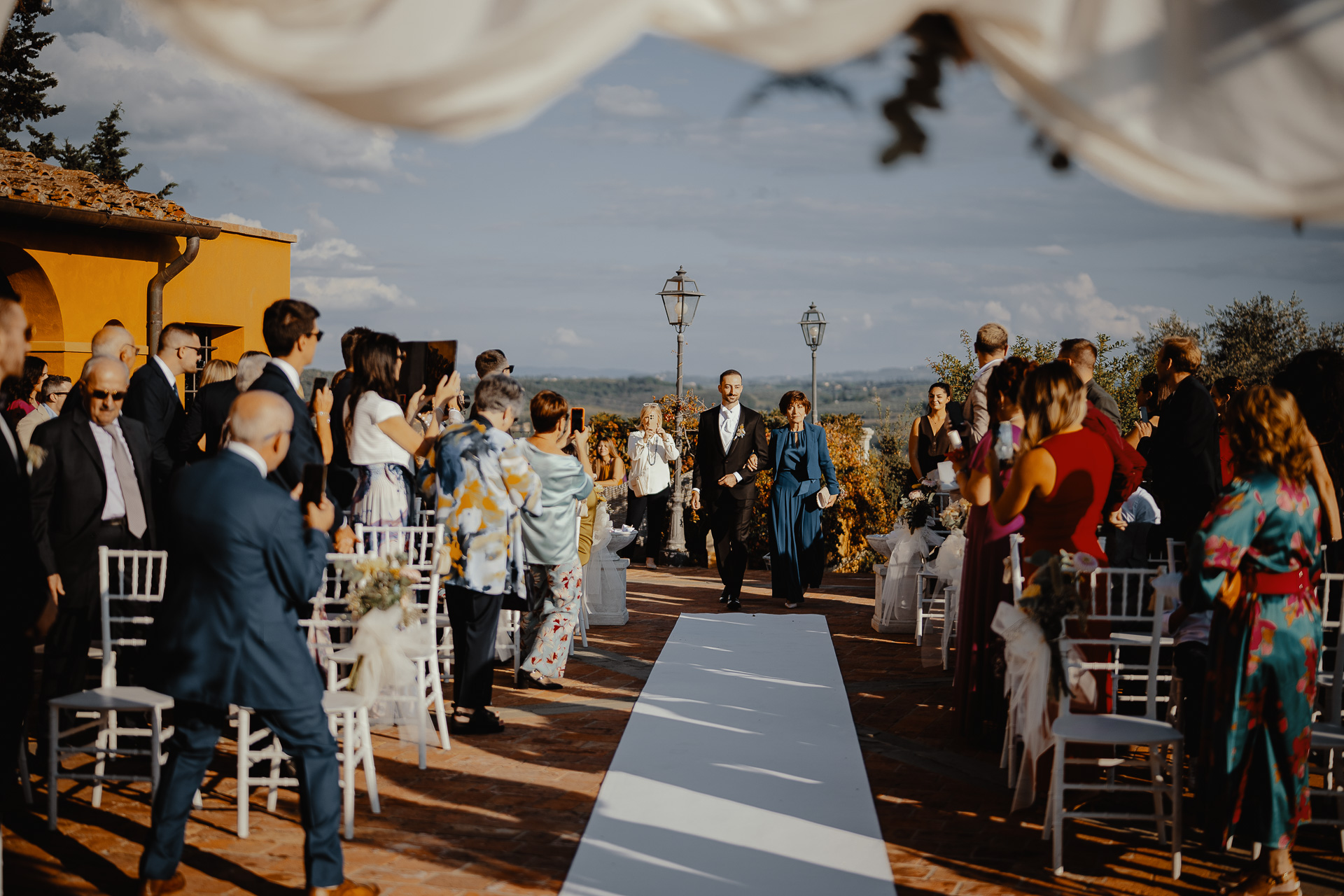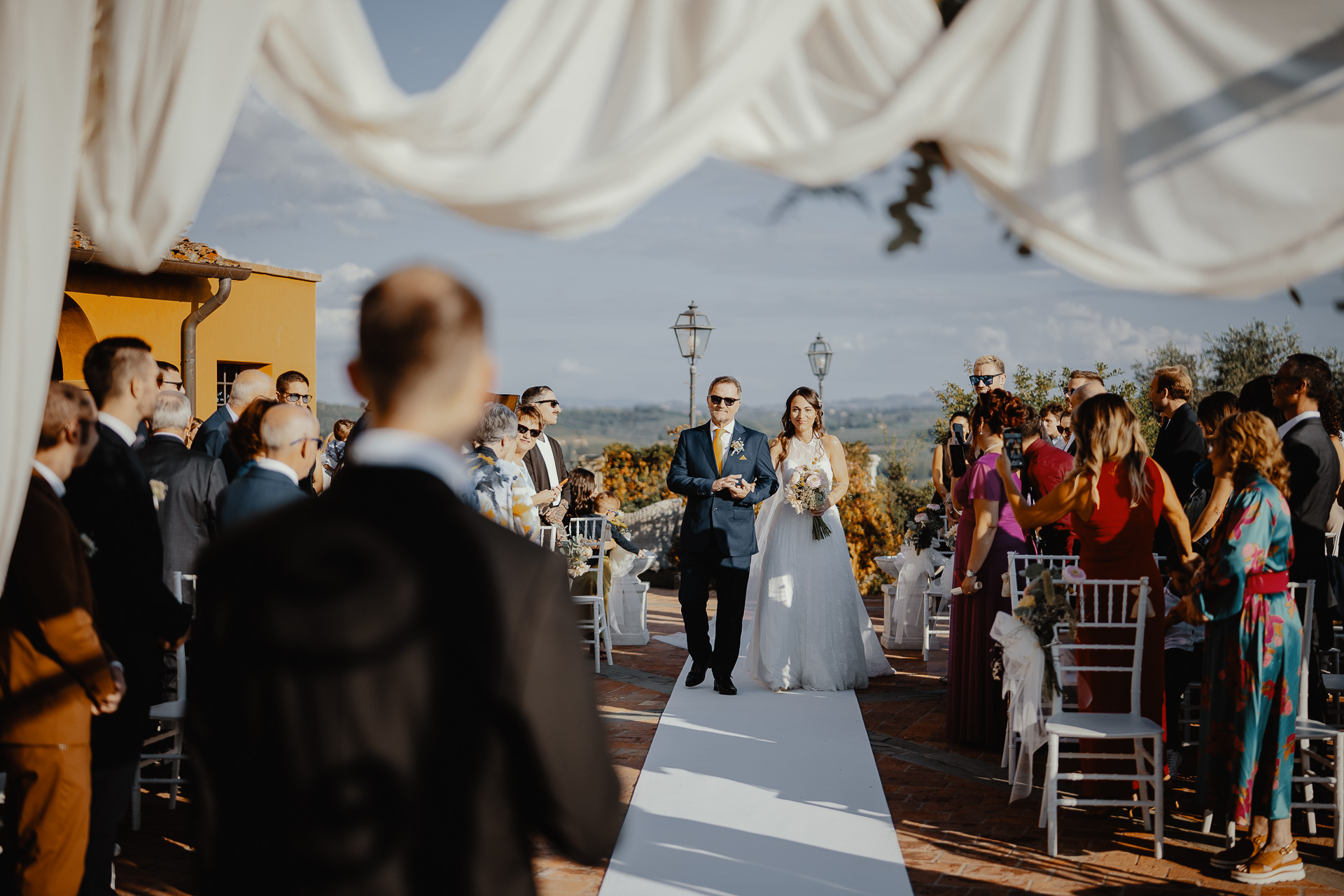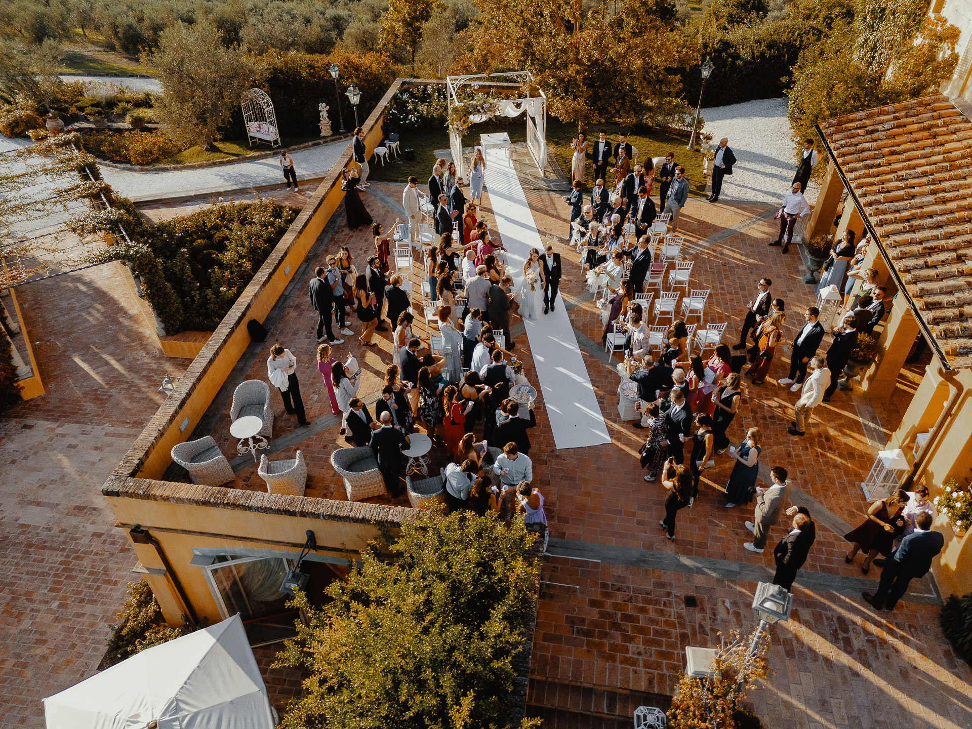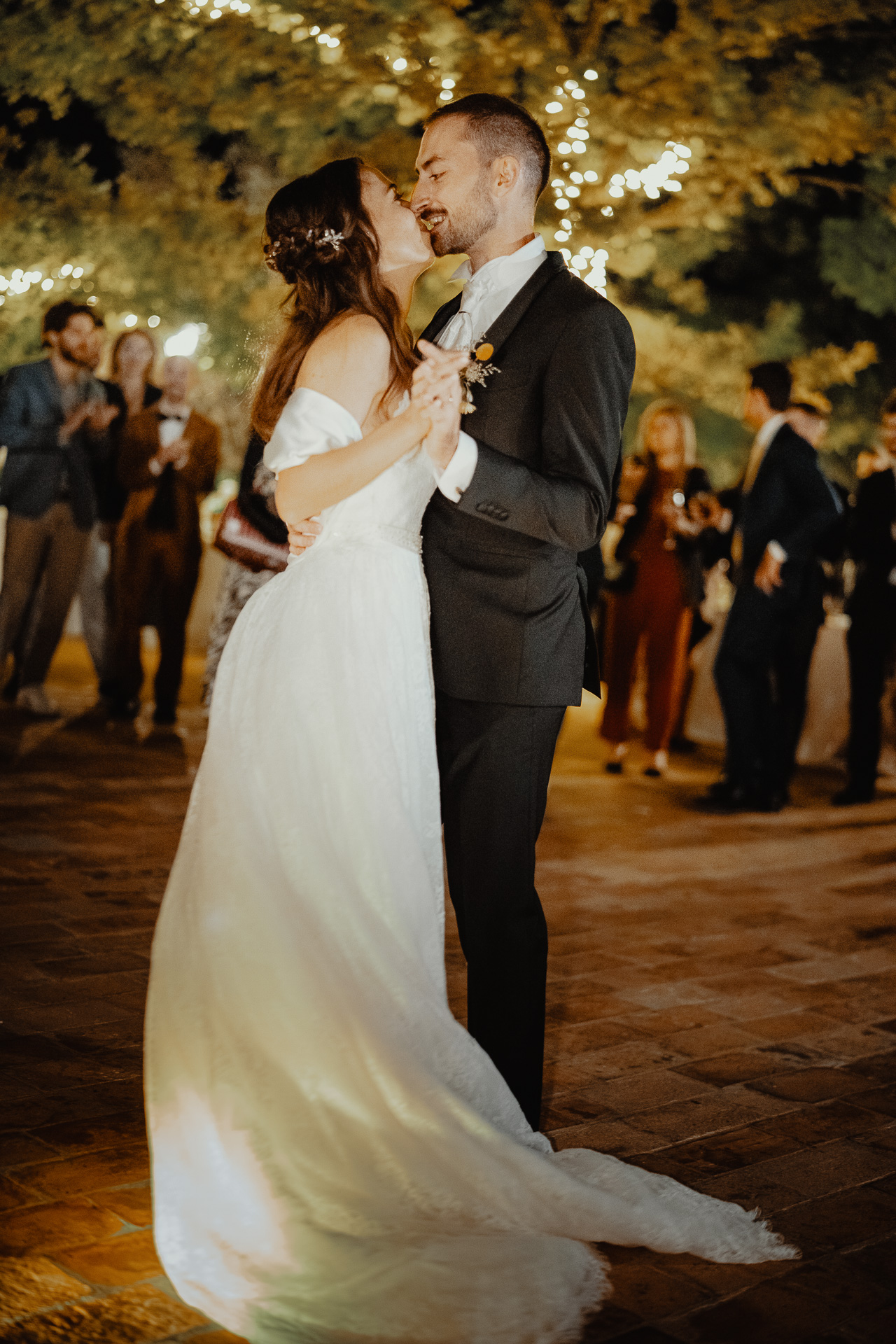 As the sun began to set, they wandered hand in hand through the villa’s olive grove, wrapped in soft light and quiet romance. The evening continued with a lively and heartfelt celebration, filled with dancing, laughter, and the kind of warmth only Tuscany can offer.