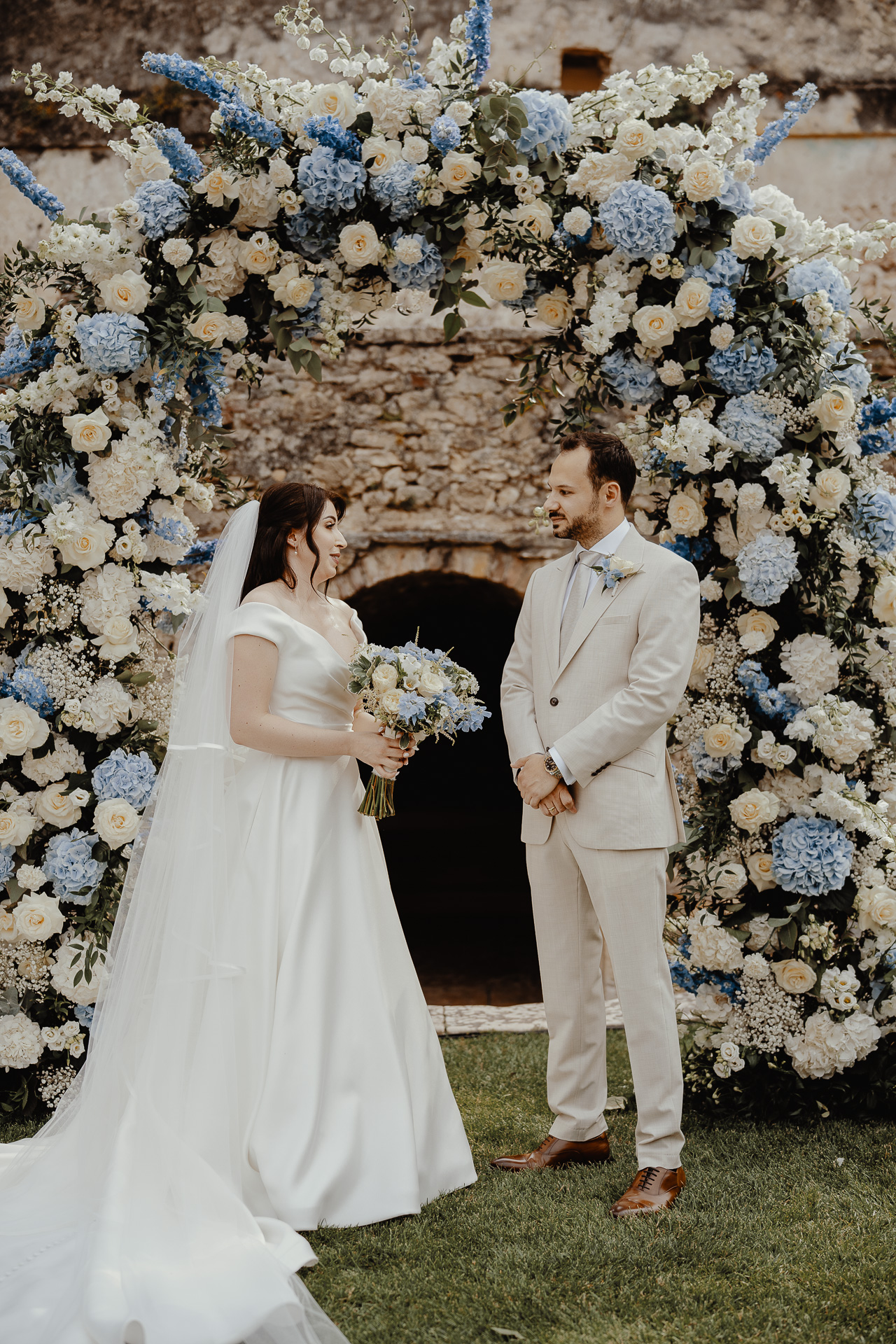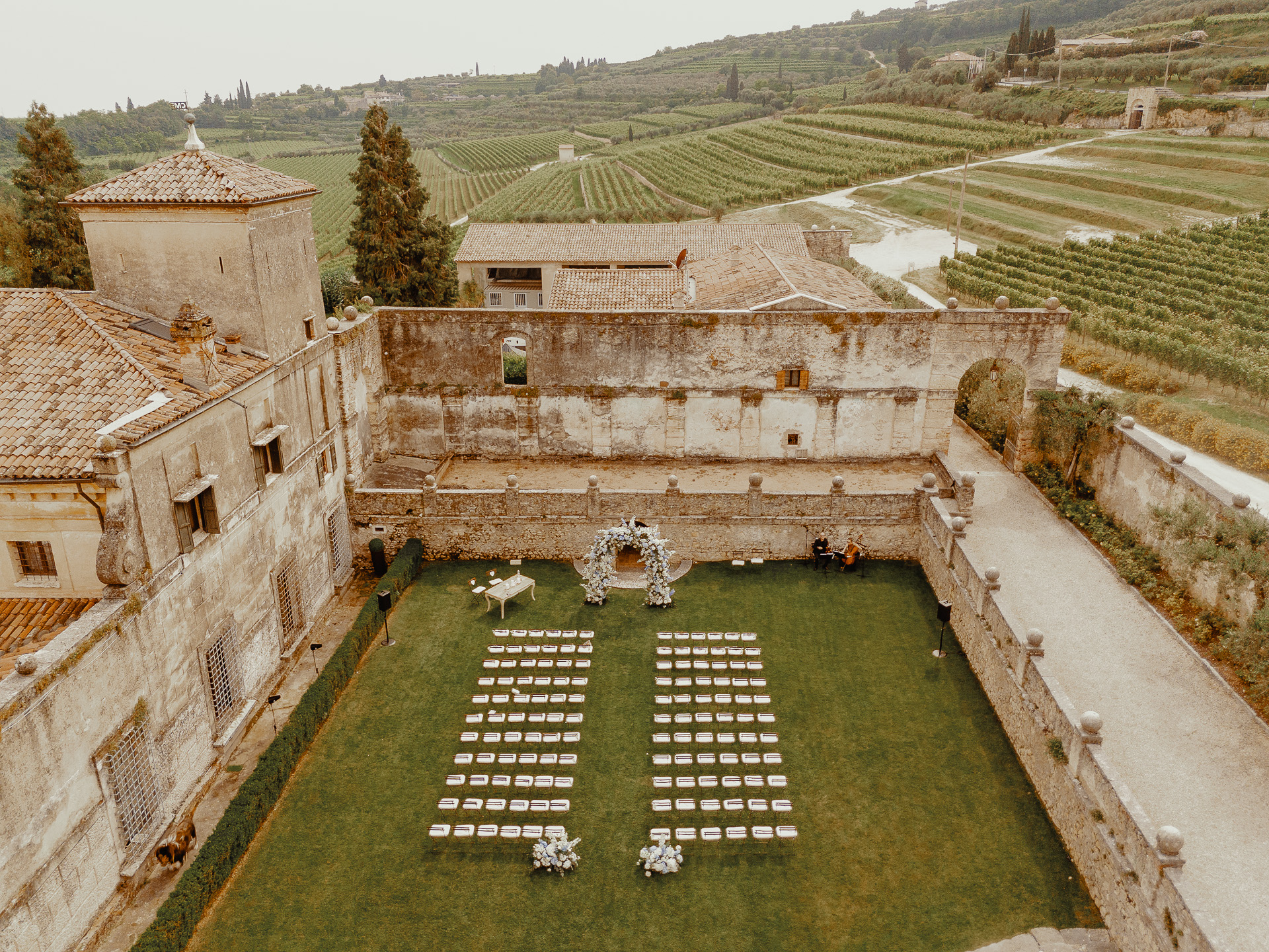 Sean & Eleonora, a wonderful Irish couple, chose the magnificent Villa Della Torre in Verona for their unforgettable wedding. Defined as “a jewel of the Italian Renaissance immersed in the timeless beauty of Valpolicella”, this historic estate, surrounded by rolling vineyards, provided the perfect backdrop for their celebration.