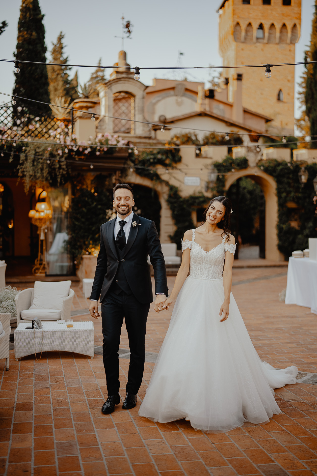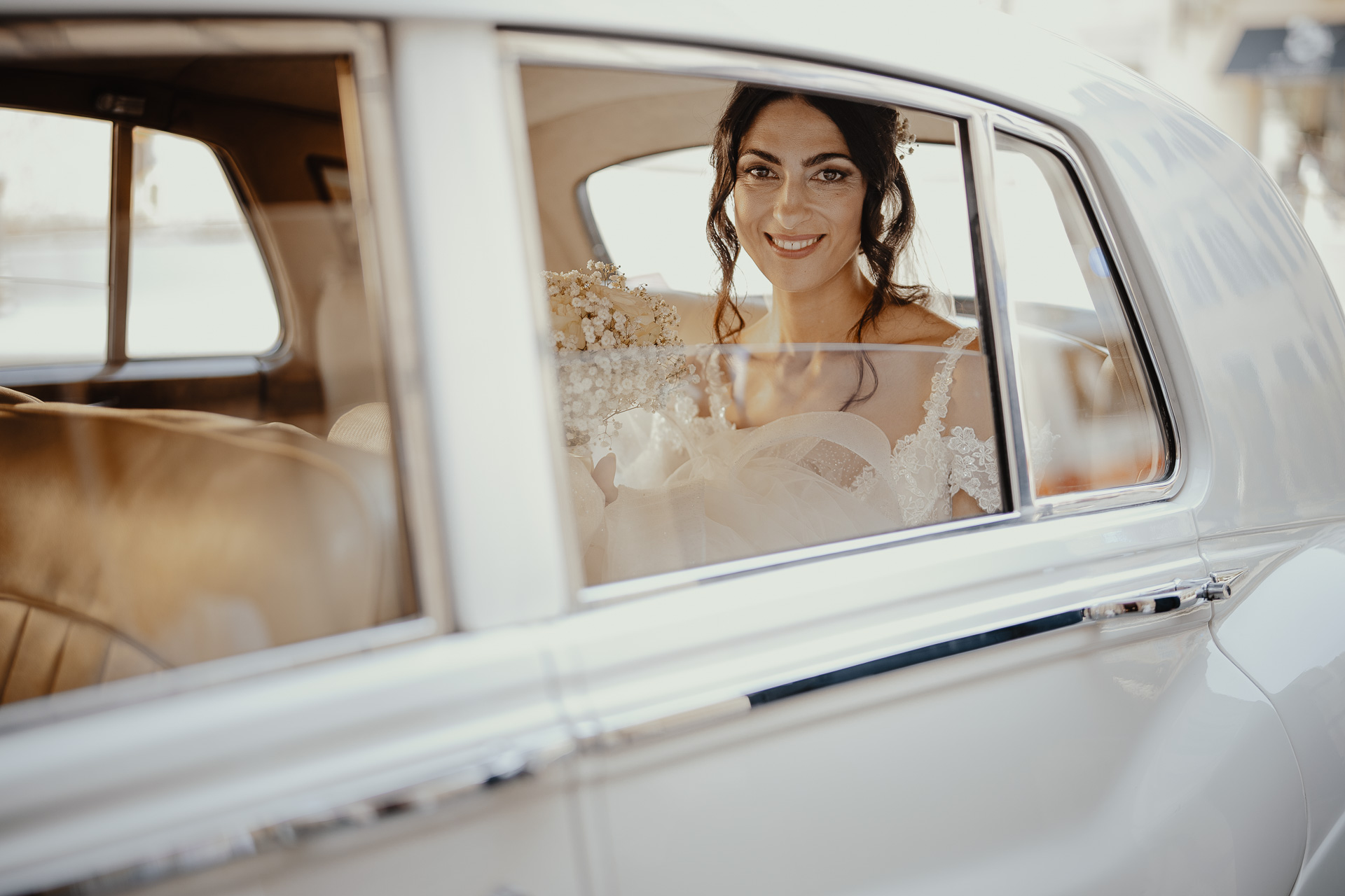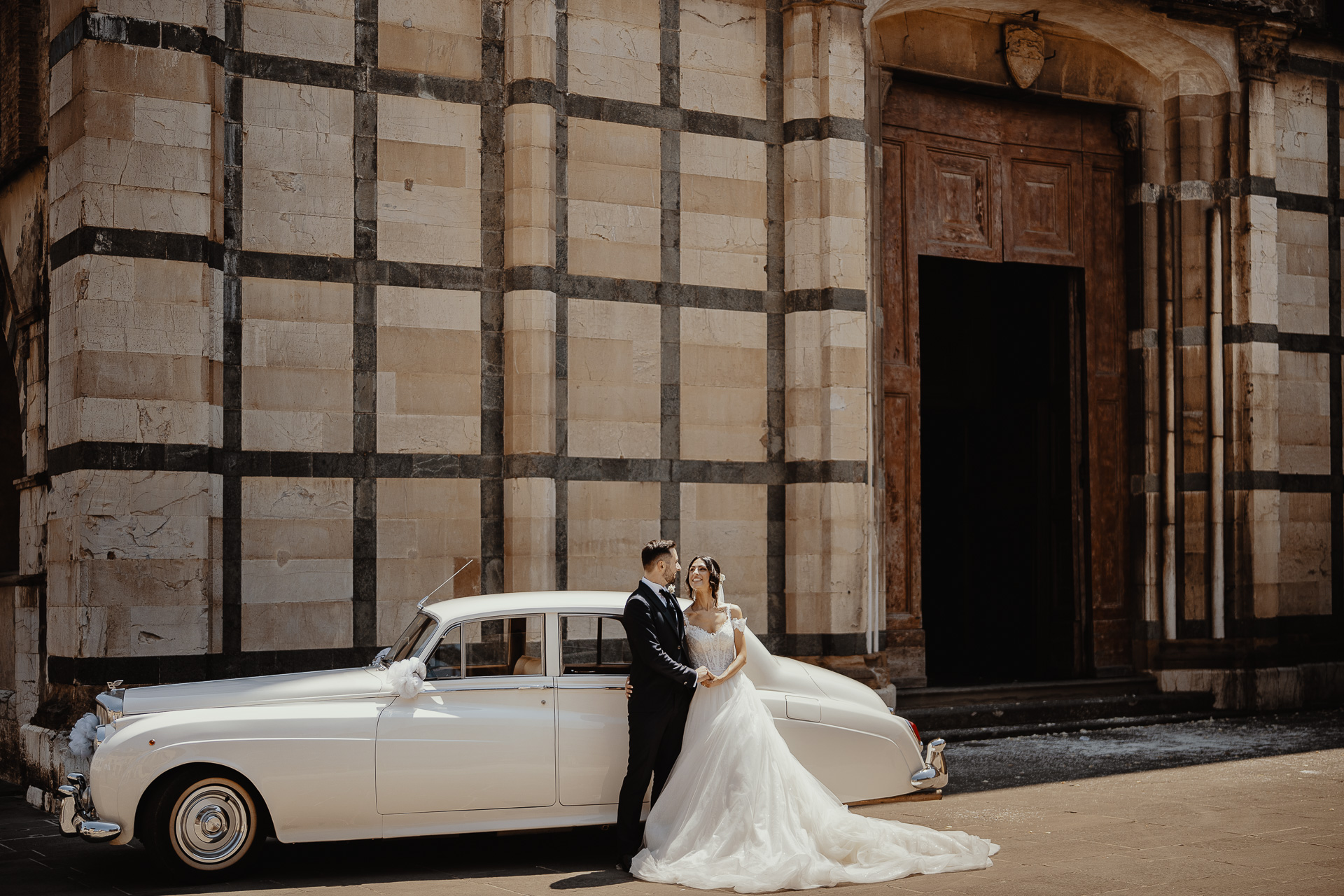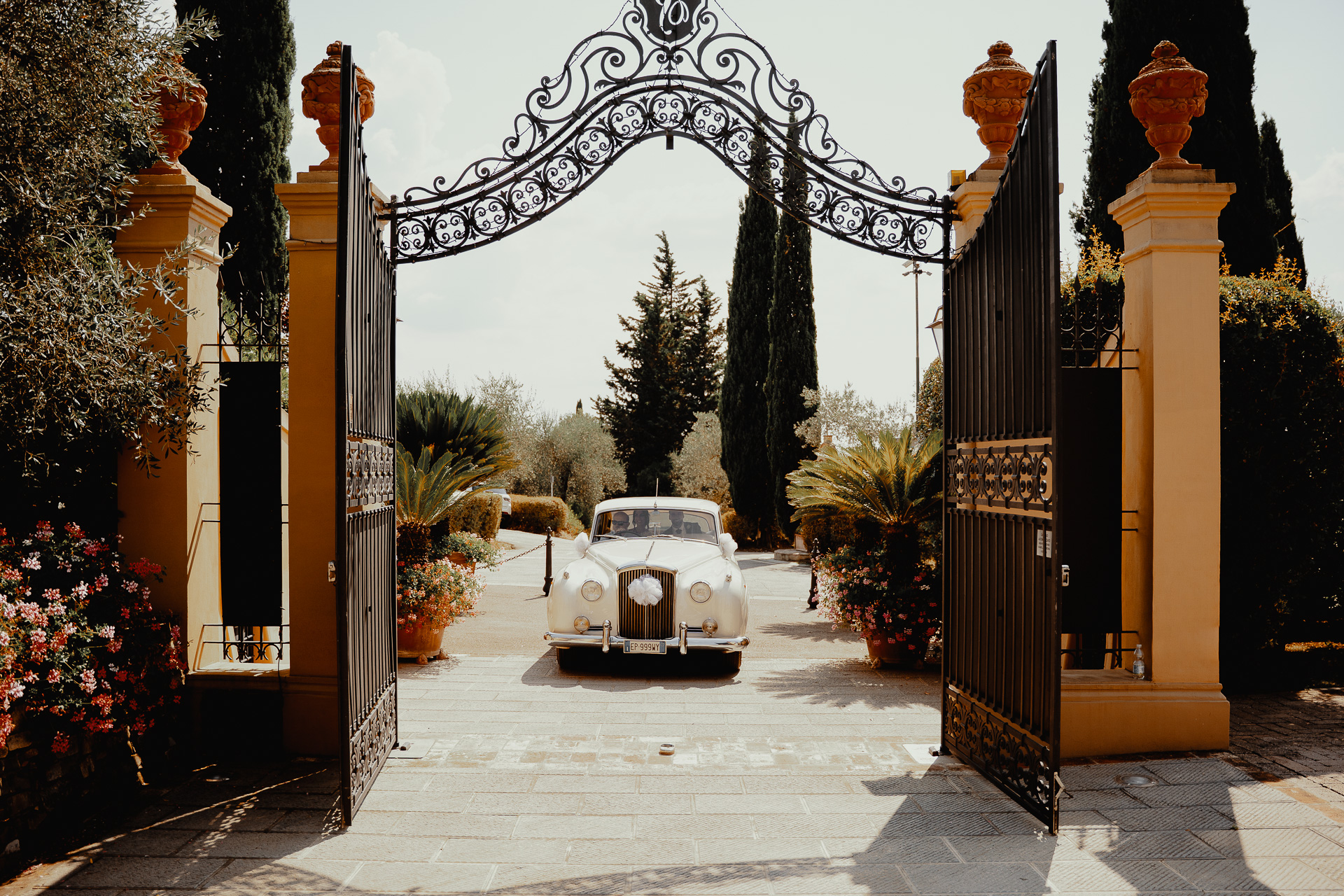 After the ceremony, the couple set off on a romantic journey through the Tuscan countryside aboard a stunning 1950s Rolls Royce. Between golden hay bales and quiet vineyard paths in the Chianti region, they took time to savor the magic of the moment — a dreamy escape through the land they love.