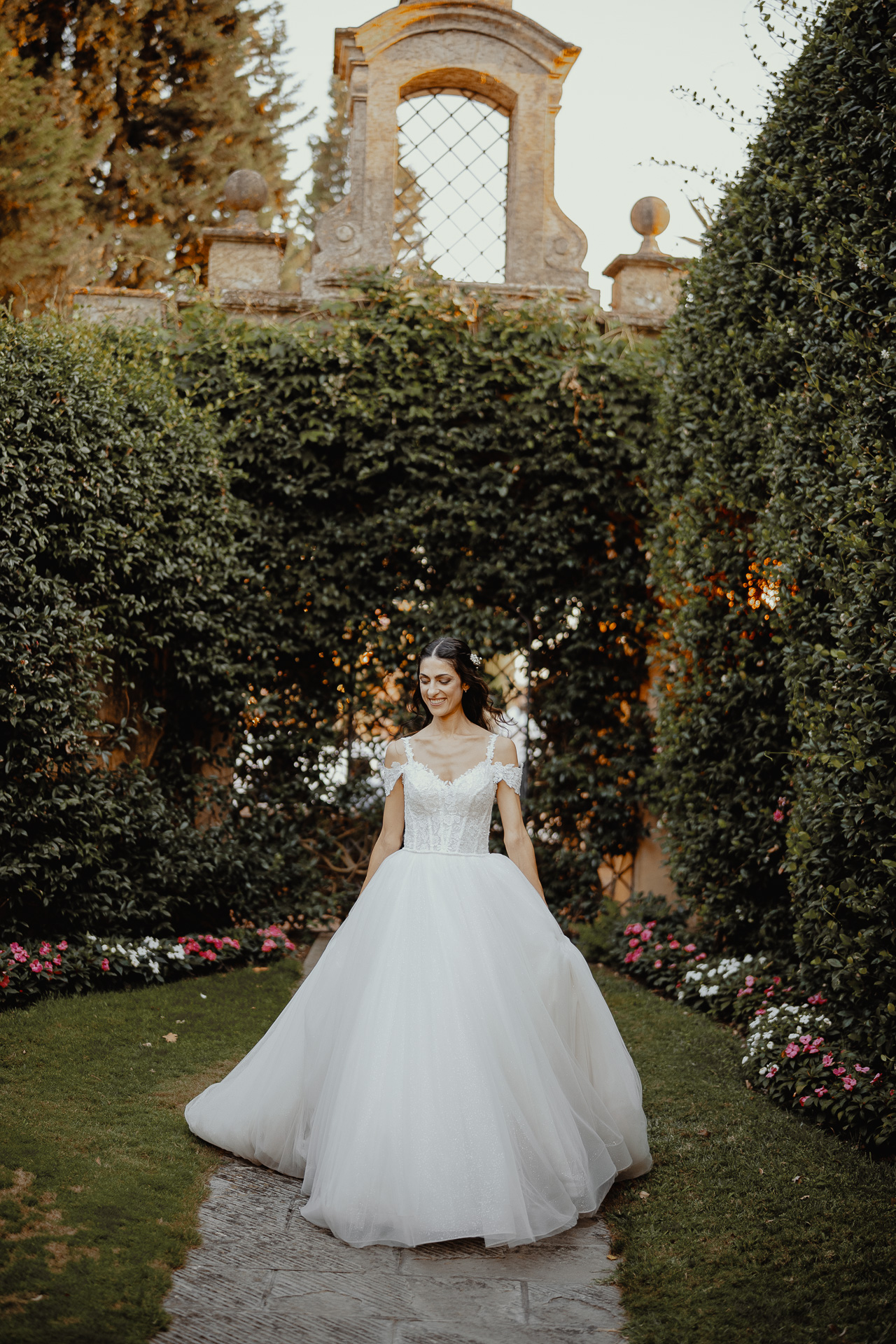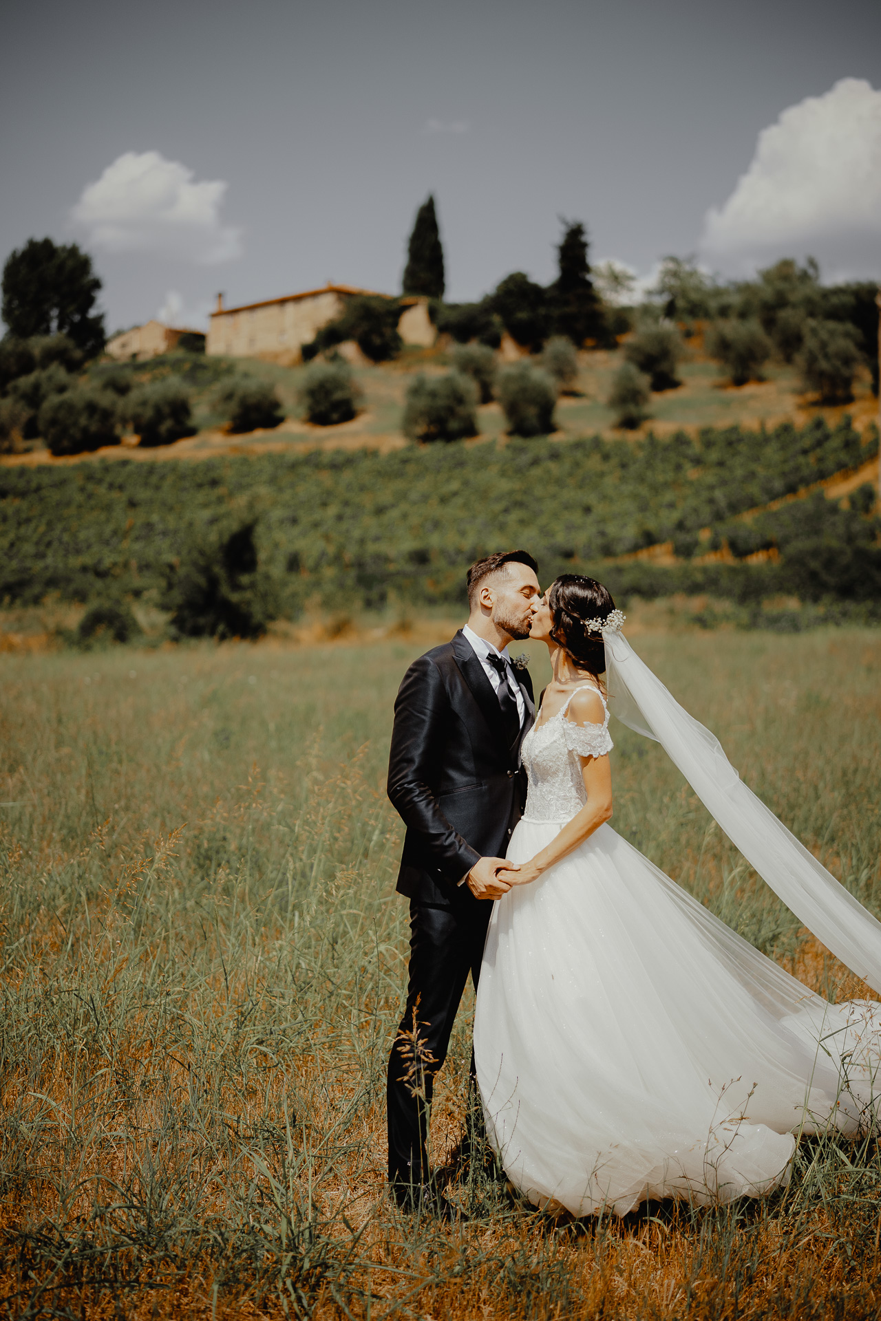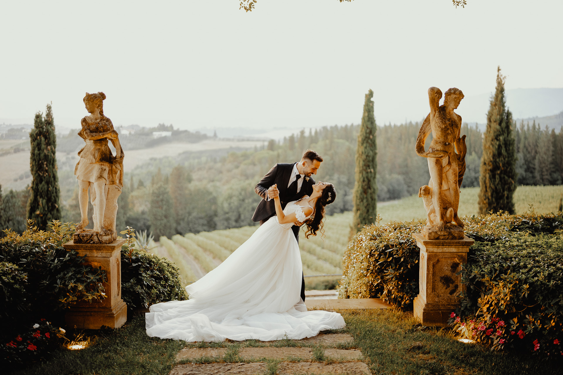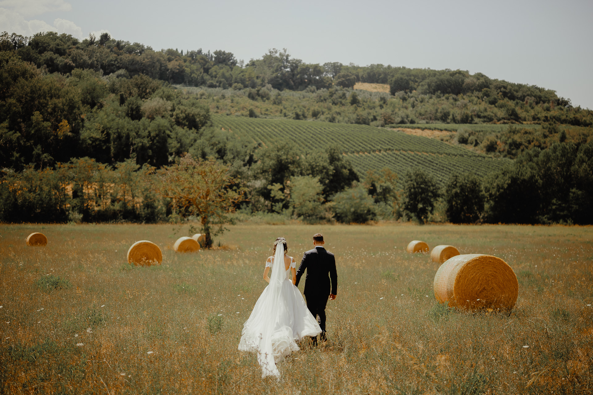 After the ceremony, the couple set off on a romantic journey through the Tuscan countryside aboard a stunning 1950s Rolls Royce. Between golden hay bales and quiet vineyard paths in the Chianti region, they took time to savor the magic of the moment — a dreamy escape through the land they love.