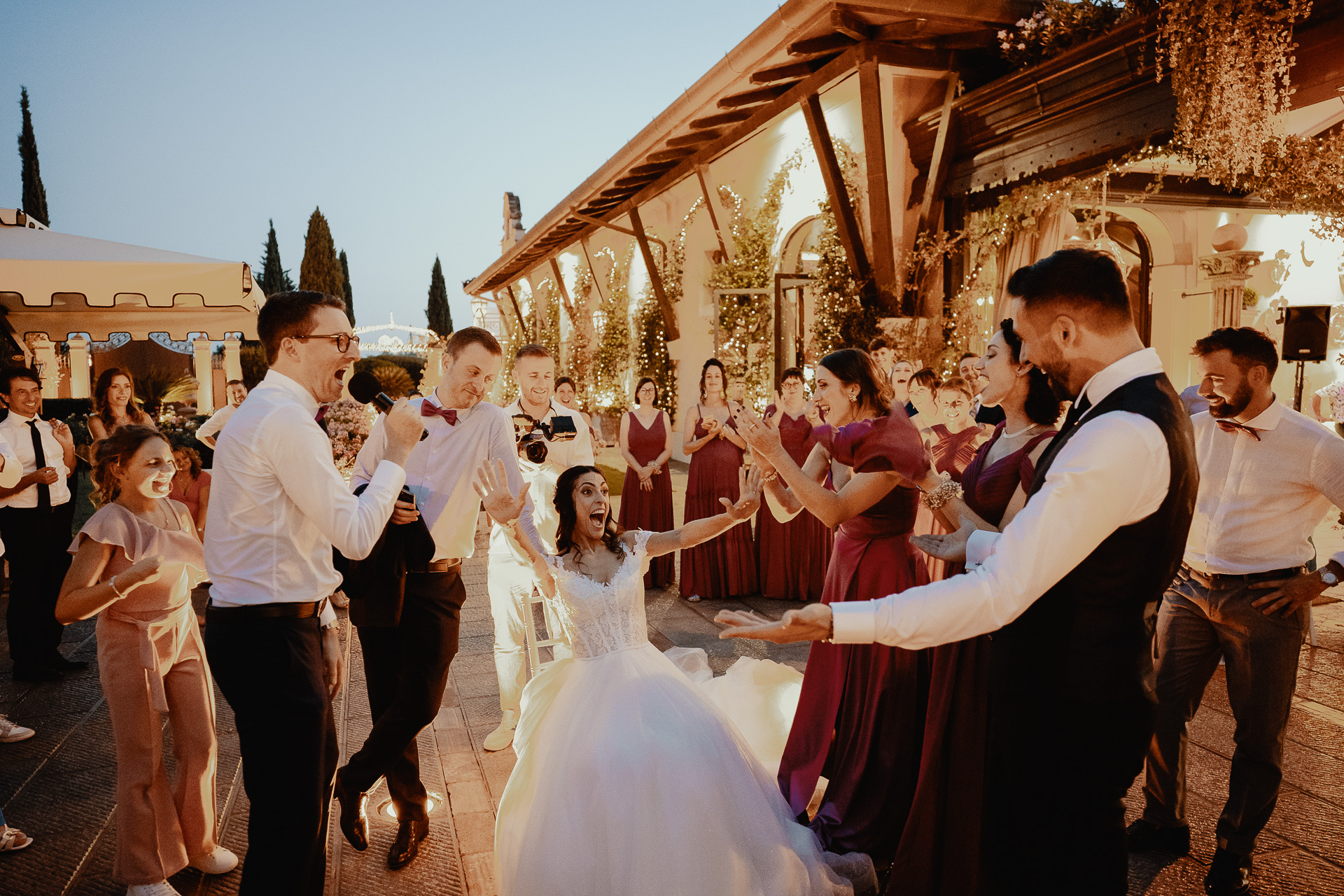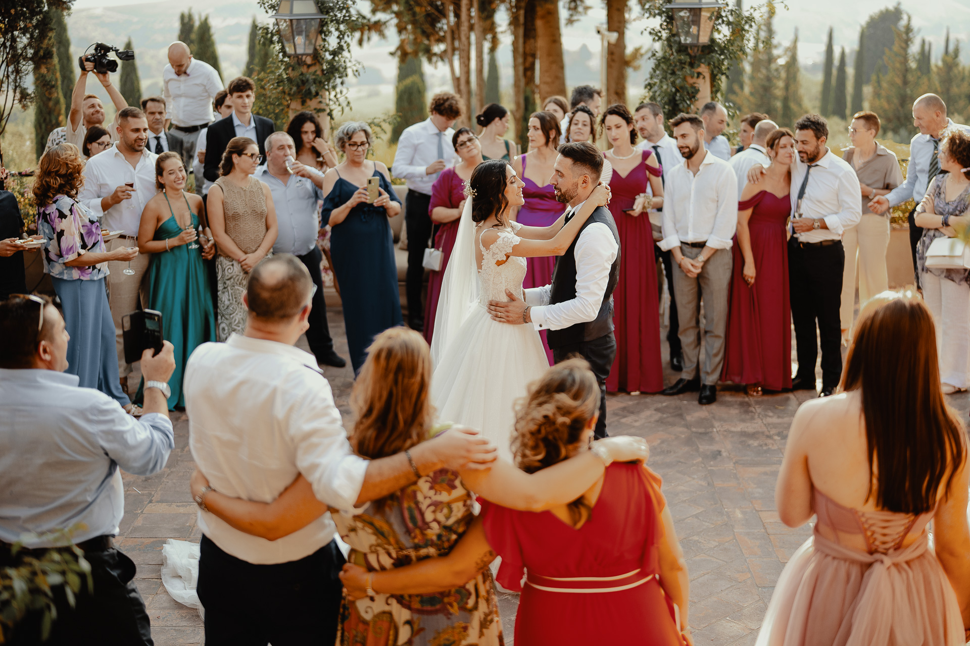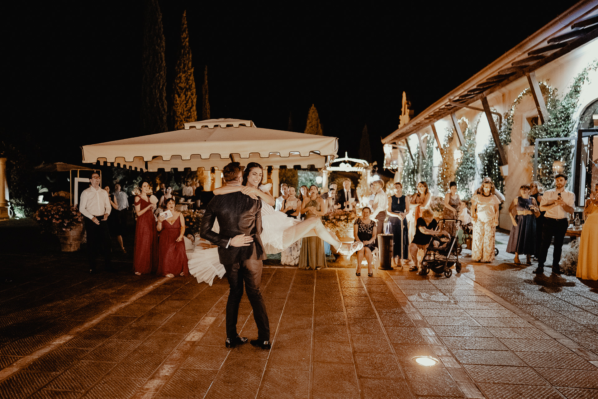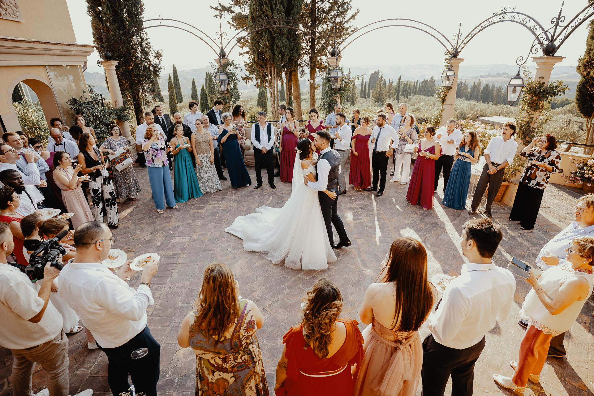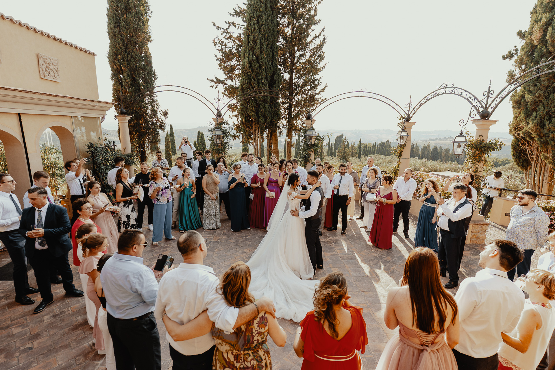 The celebration continued at Antica Fattoria di Paterno, a historic estate nestled in the heart of Tuscany. As the sun dipped behind the hills, the atmosphere turned golden and soft, wrapping the entire evening in warmth and wonder. With good wine, laughter, and joy in the air, it felt like a true Tuscan fairytale brought to life.