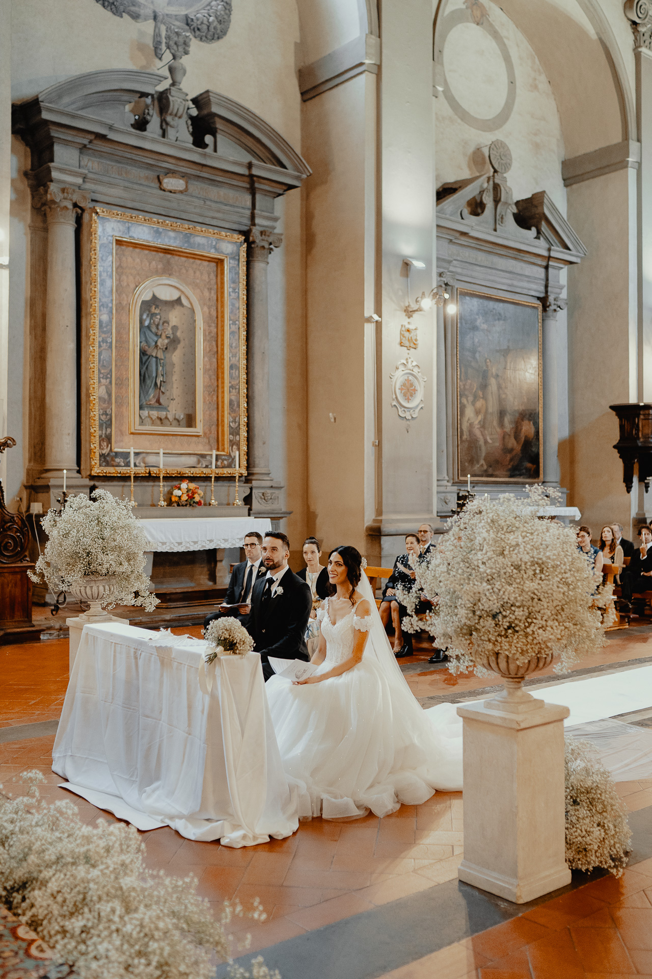Federica and Alessandro’s wedding was the perfect blend of elegance, emotion, and timeless Tuscan charm. The day began with a deeply moving ceremony in a beautiful church in the heart of Prato — a moment of grace and connection, surrounded by history and light.