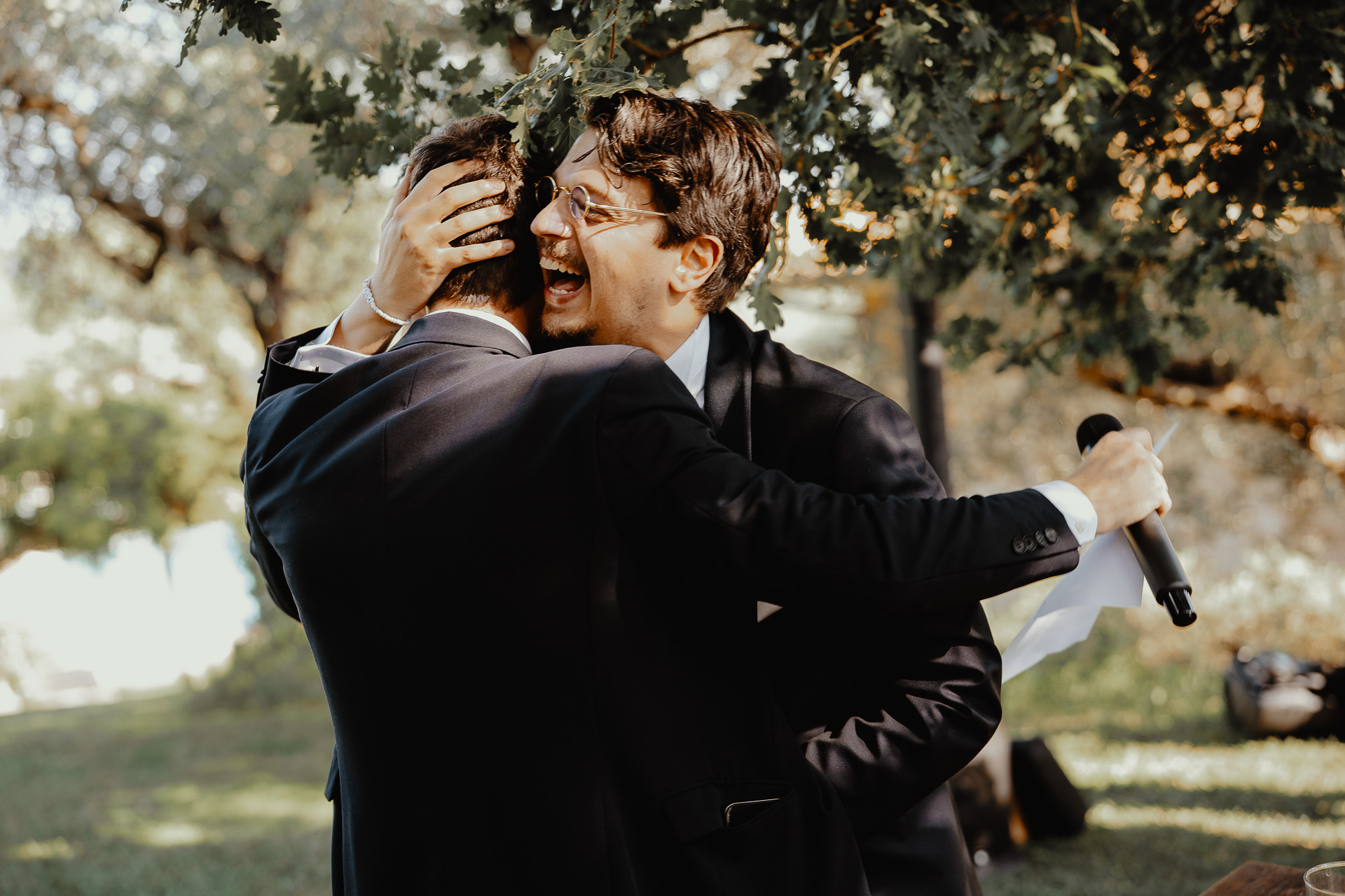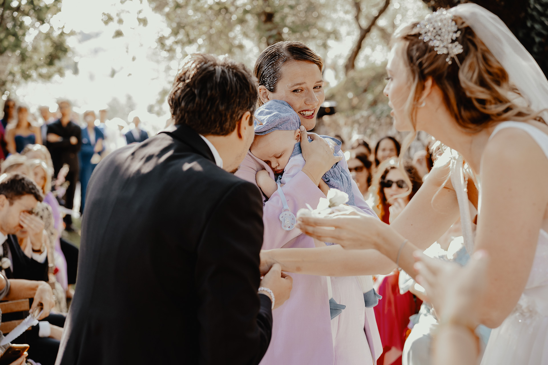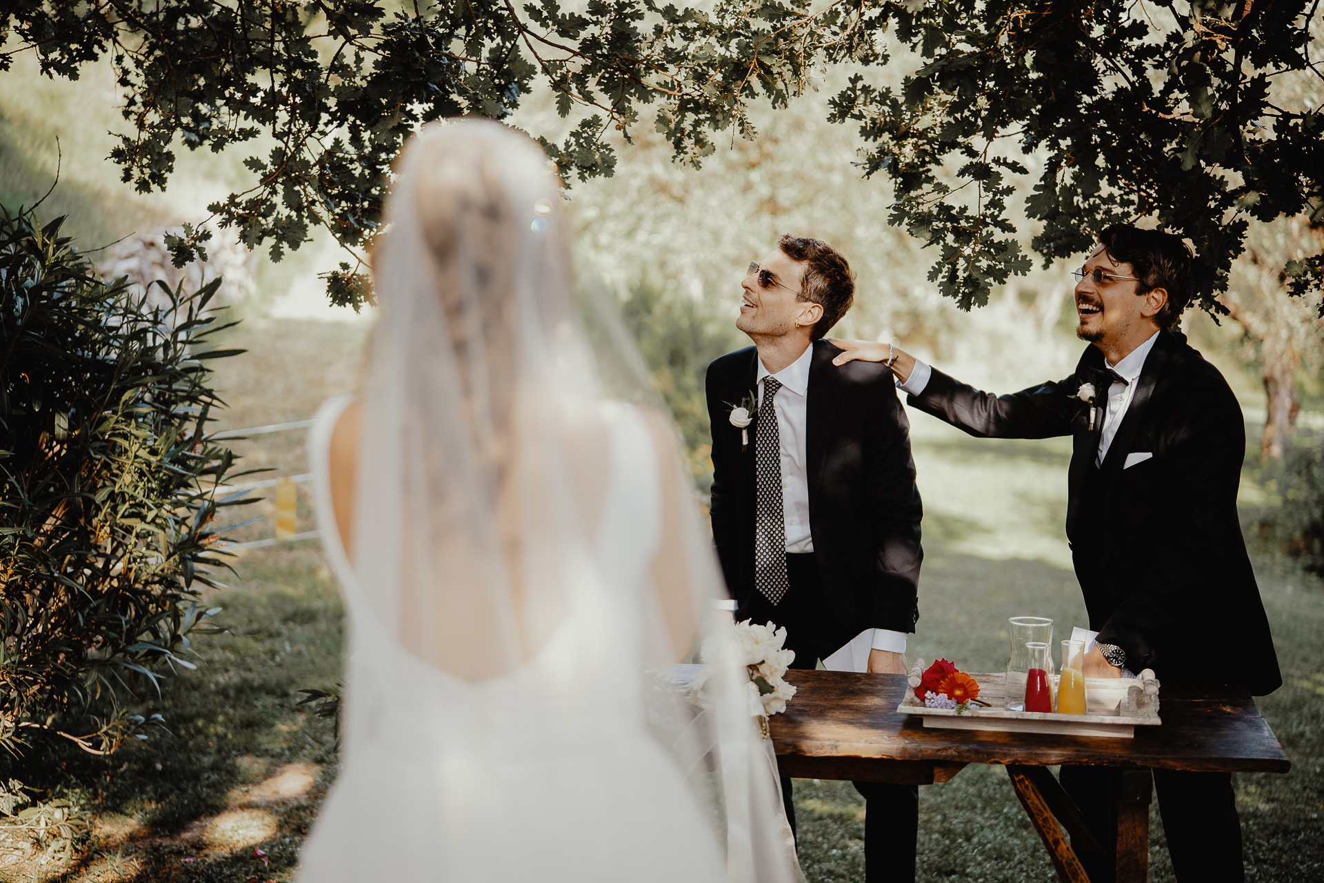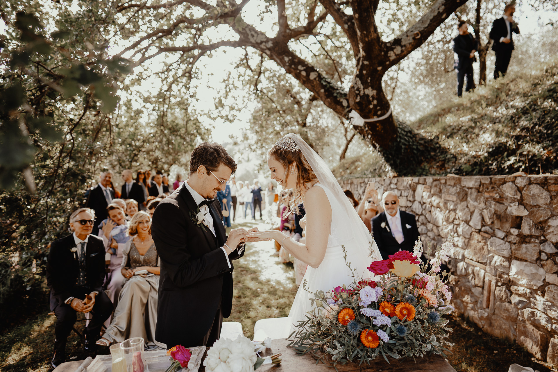 The ceremony took place in a small grove, a peaceful and romantic corner where the couple exchanged vows surrounded by nature and the people they love most. Their sweetness and connection could be felt in every glance and gesture.