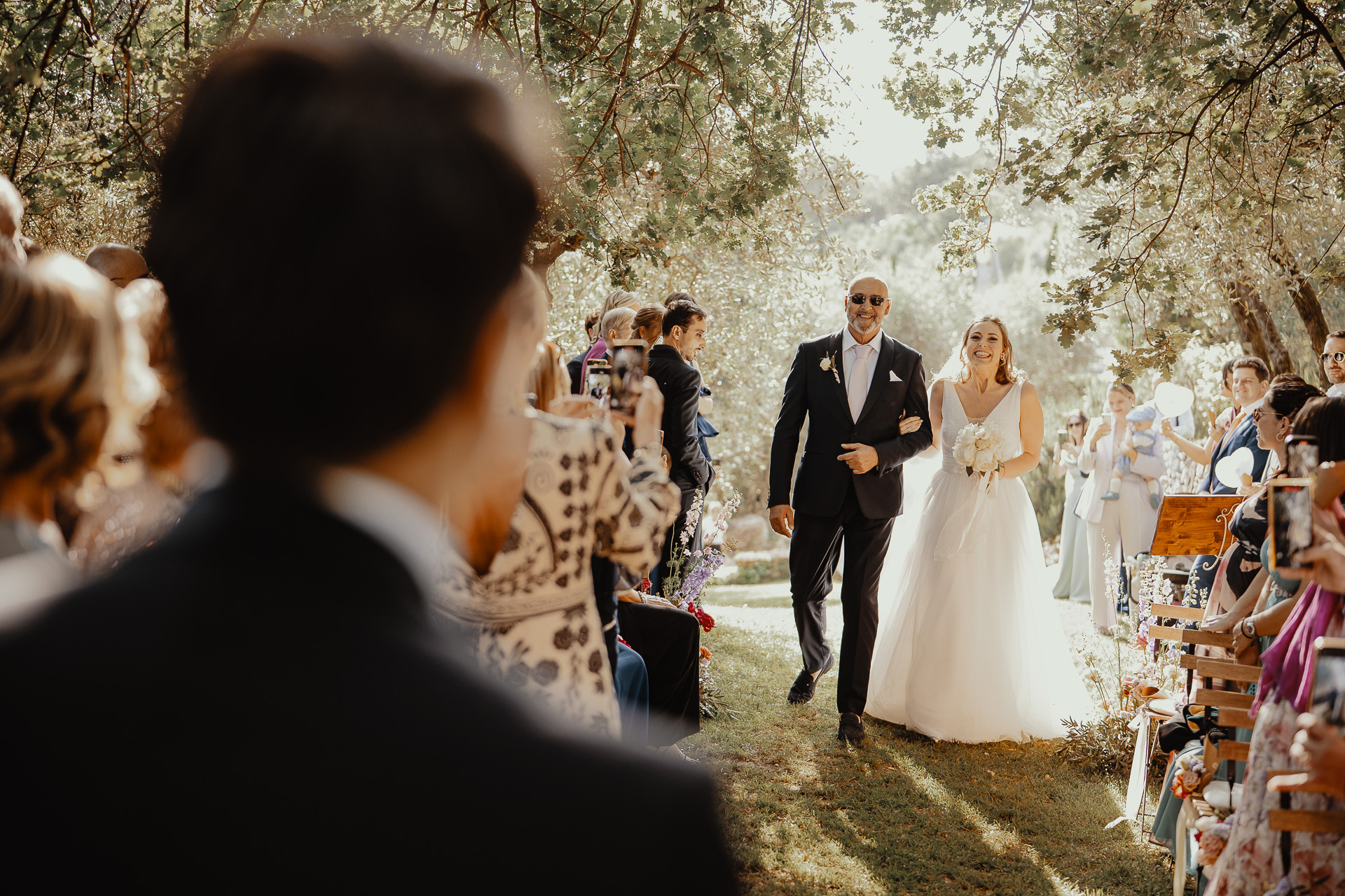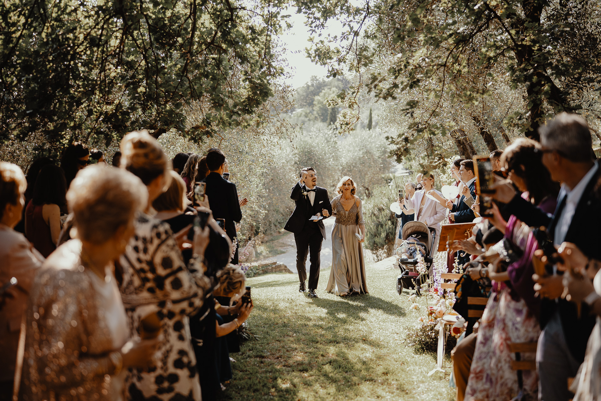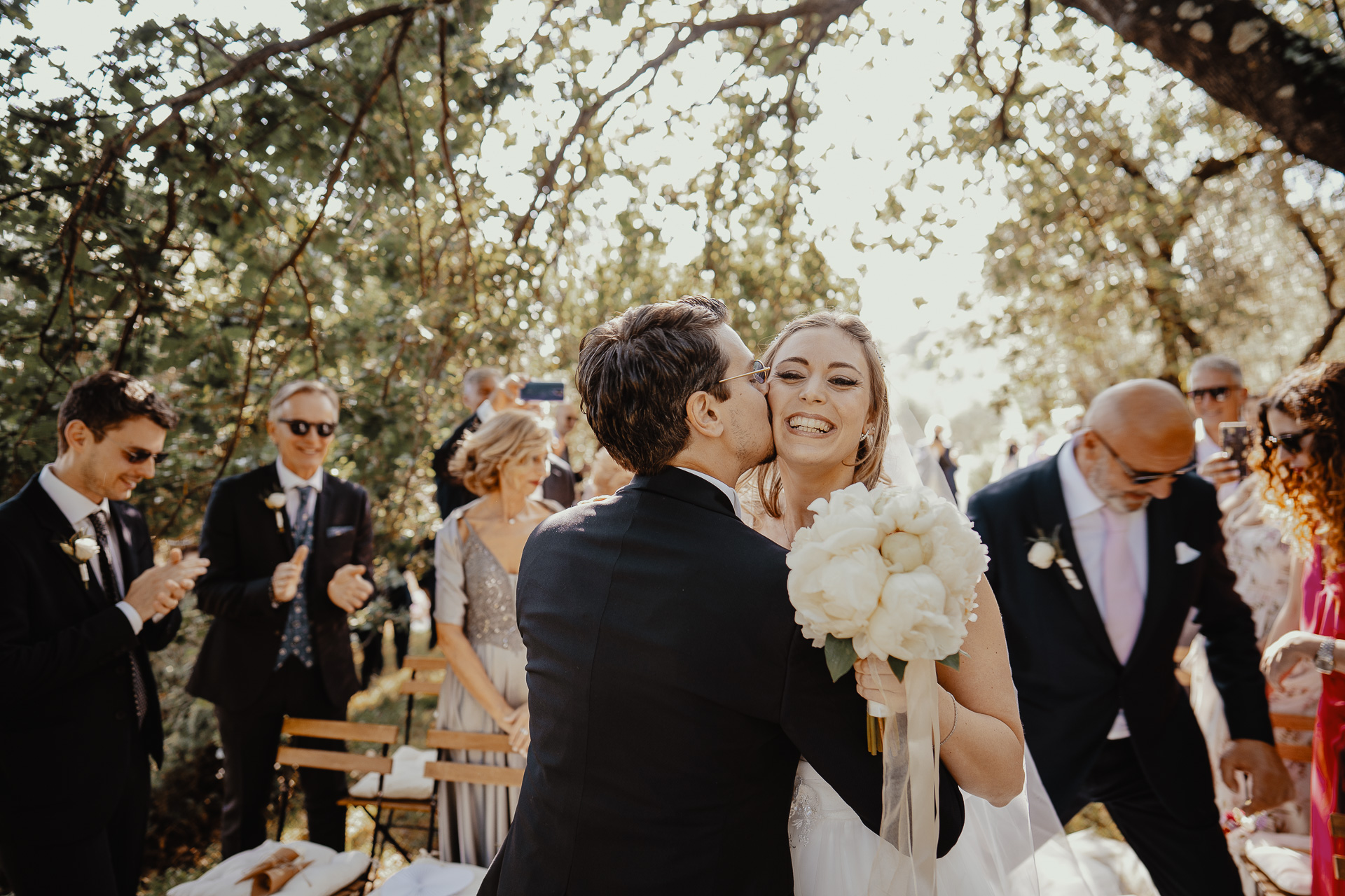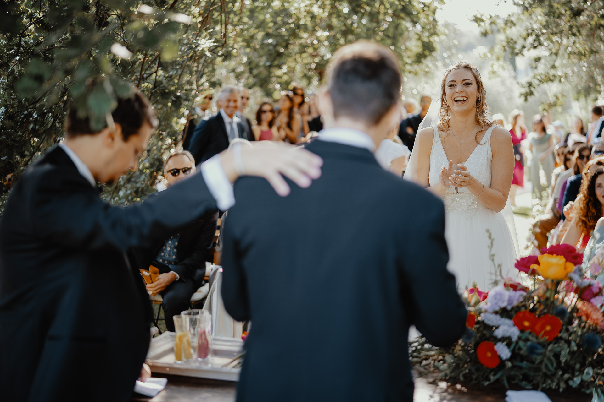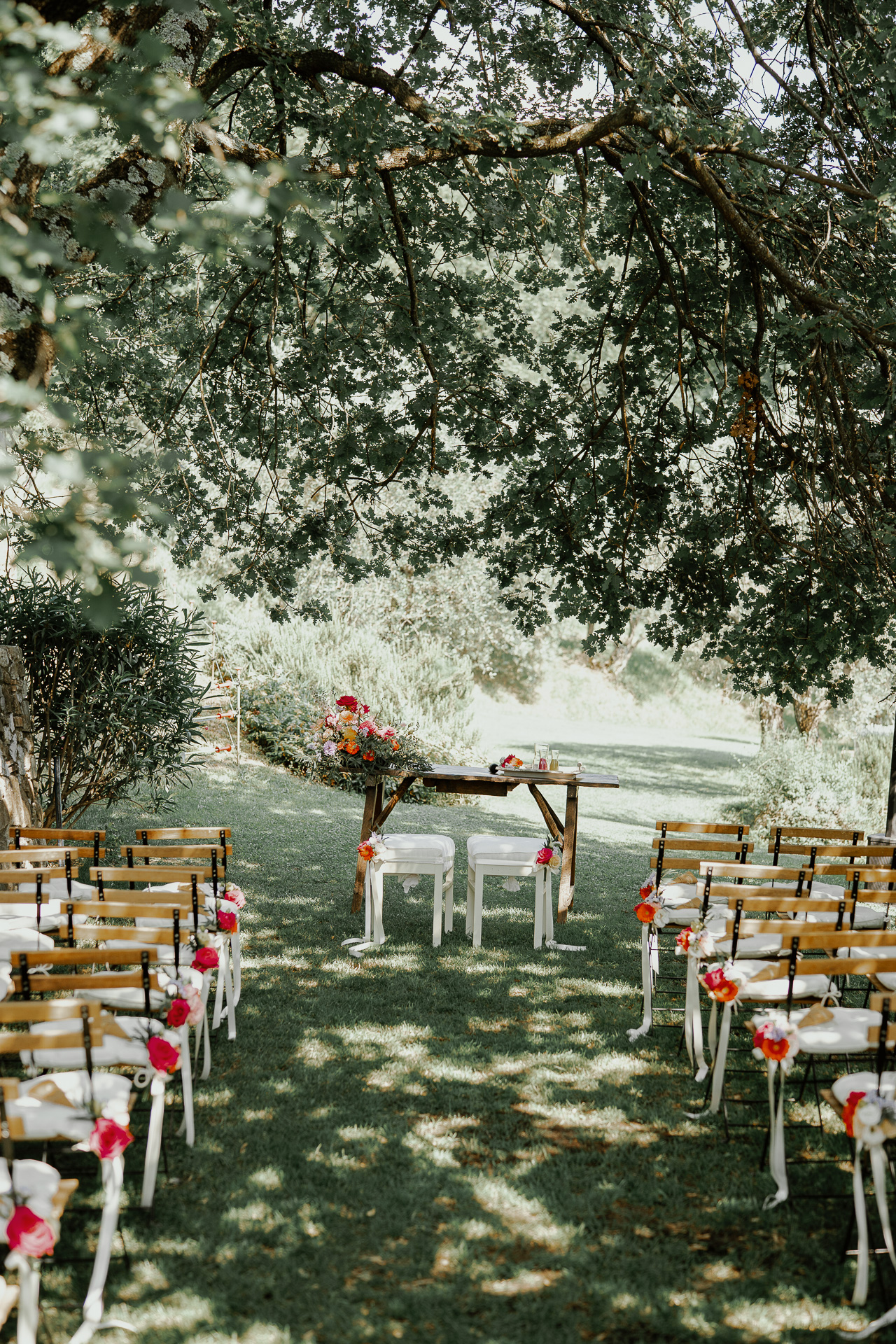 The ceremony took place in a small grove, a peaceful and romantic corner where the couple exchanged vows surrounded by nature and the people they love most. Their sweetness and connection could be felt in every glance and gesture.