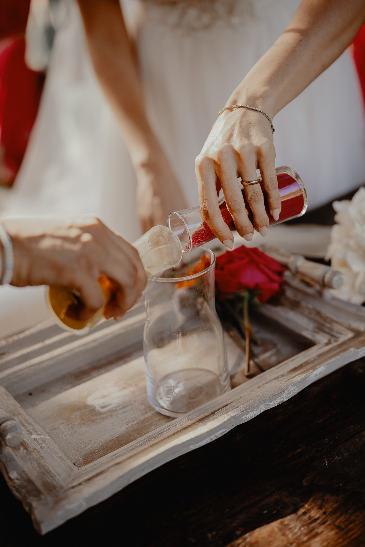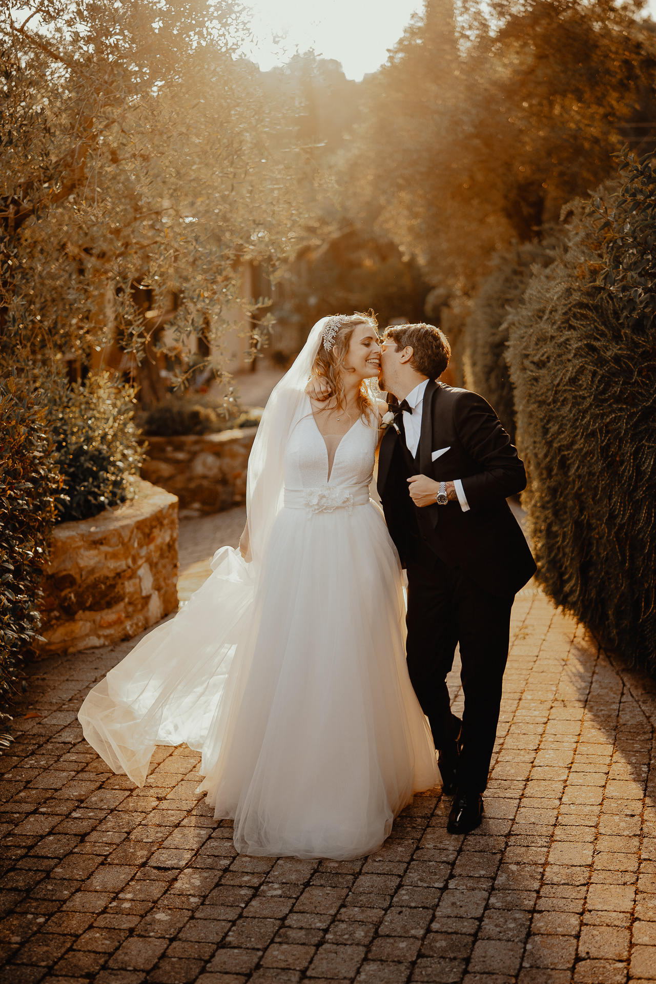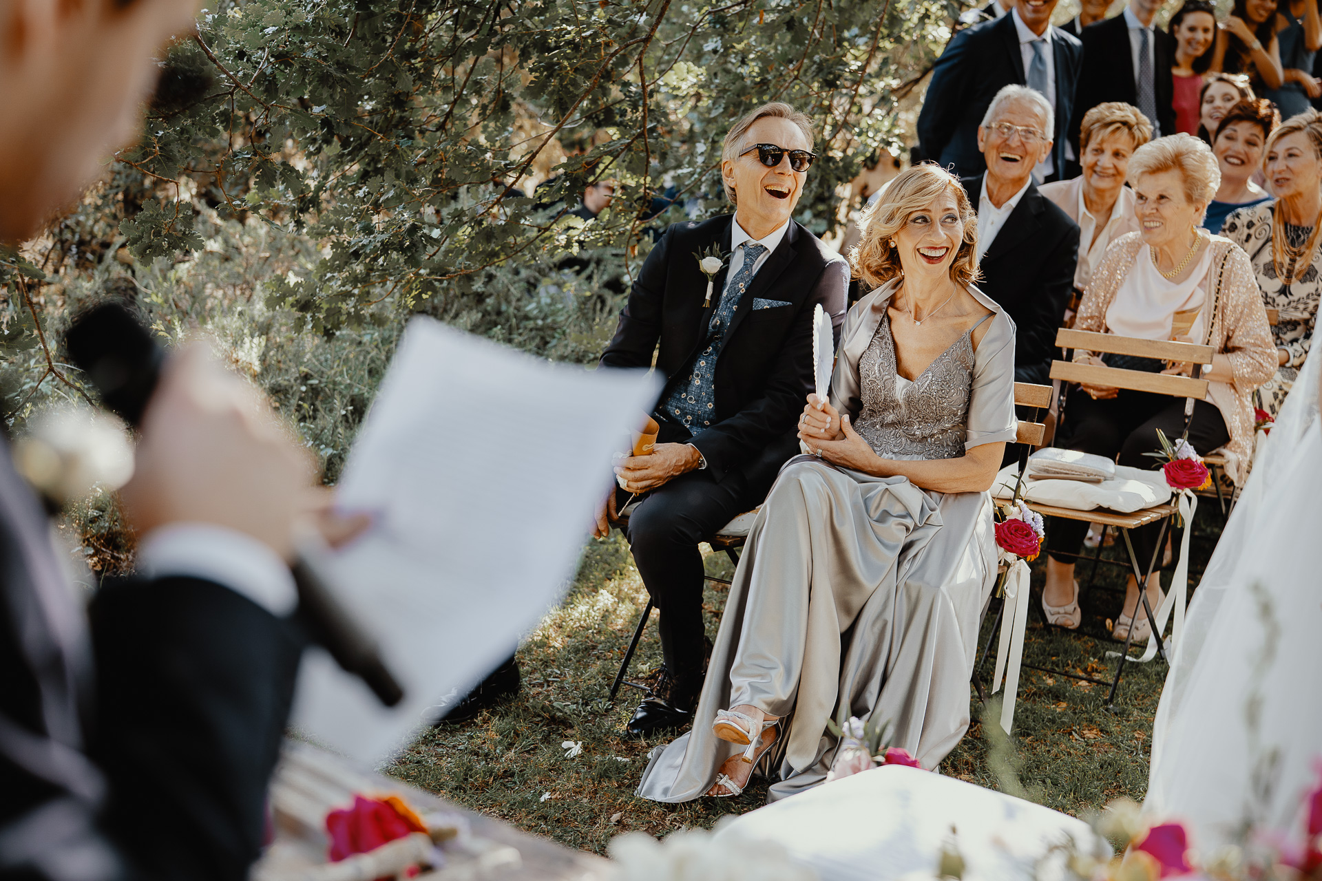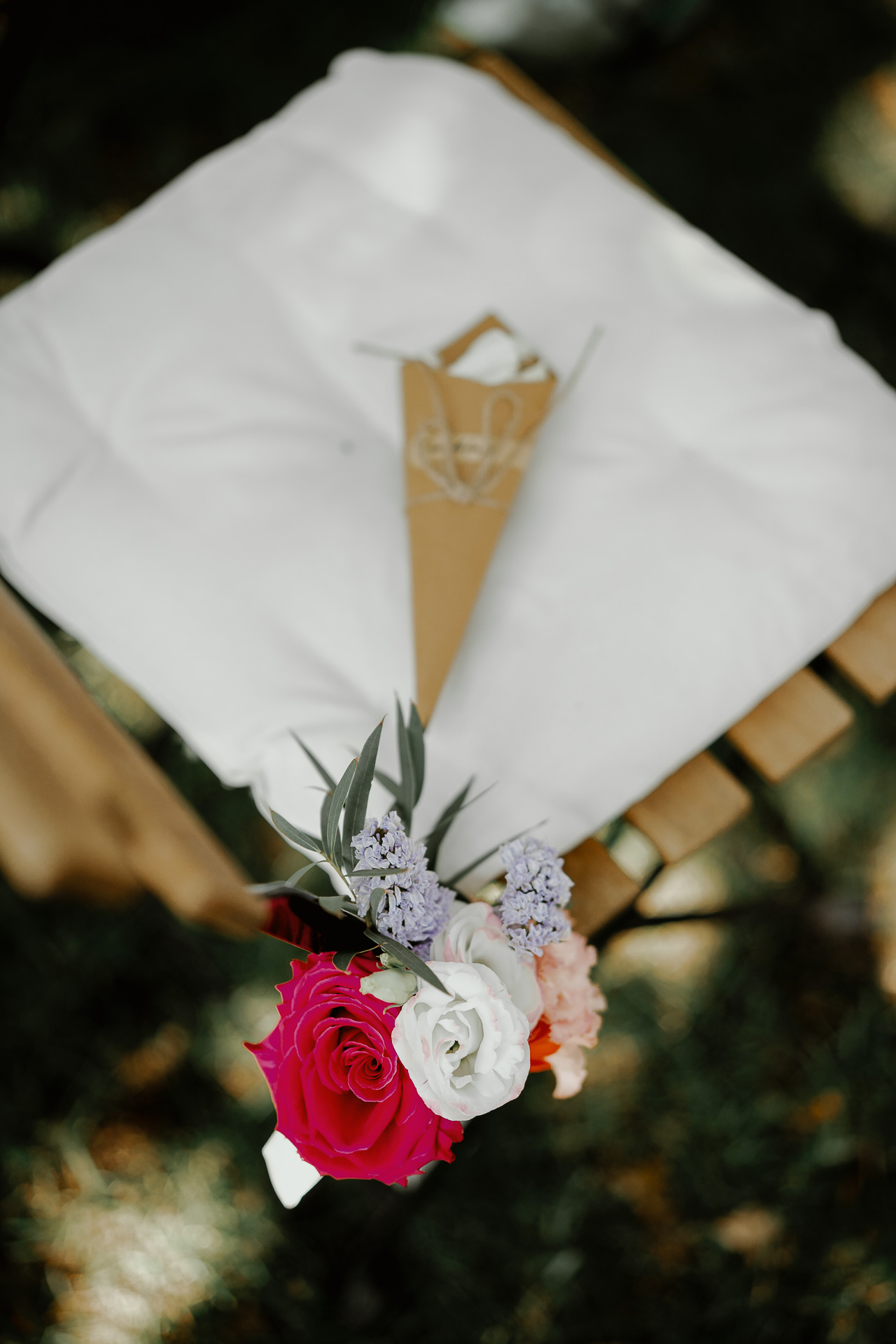 The ceremony took place in a small grove, a peaceful and romantic corner where the couple exchanged vows surrounded by nature and the people they love most. Their sweetness and connection could be felt in every glance and gesture.