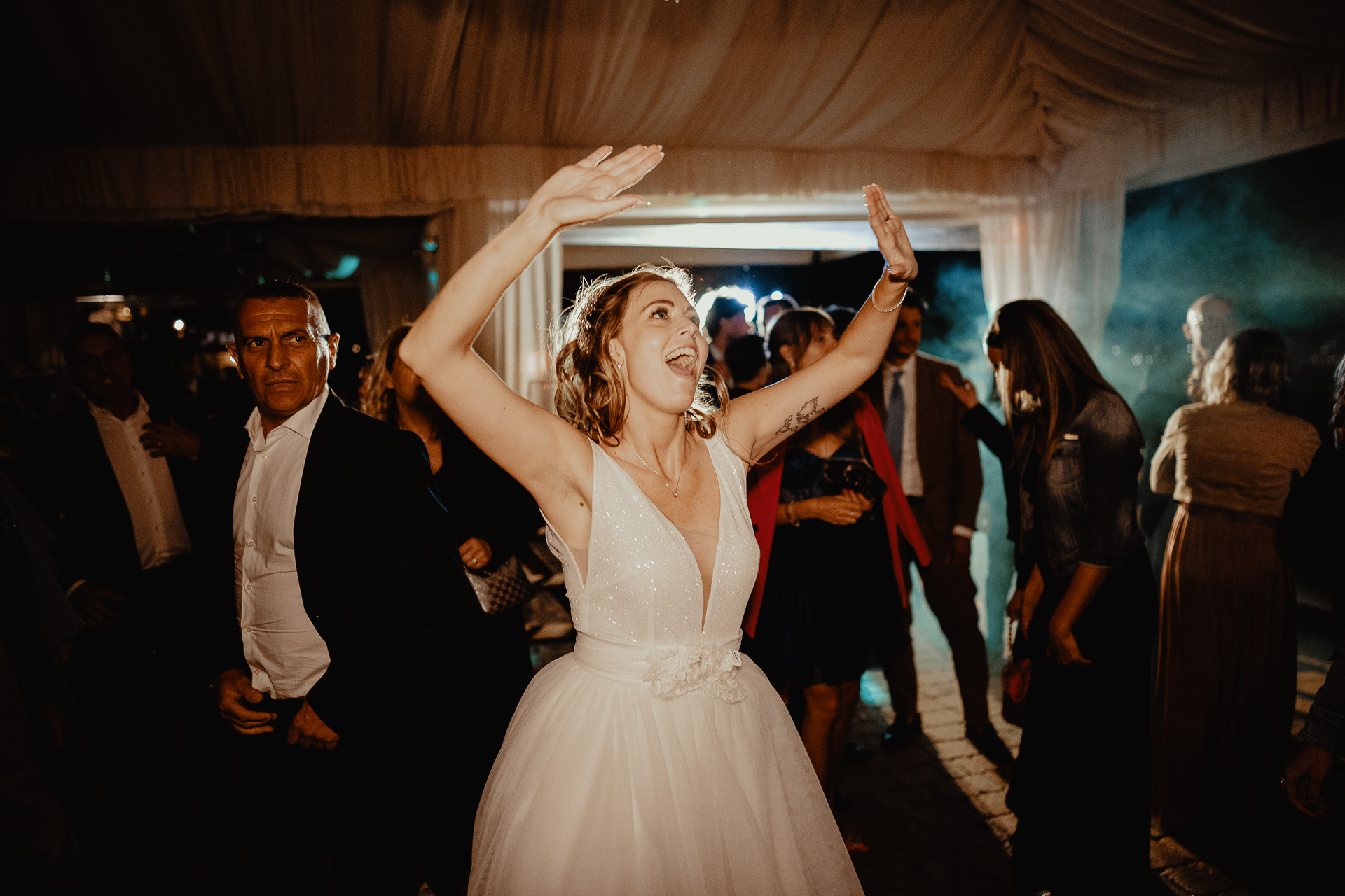 As the day turned to evening, a stunning sunset wrapped the landscape in golden light, giving way to a night full of joy and energy. The party exploded into wild dancing — between the tables, under the stars, and all the way into the early hours.
