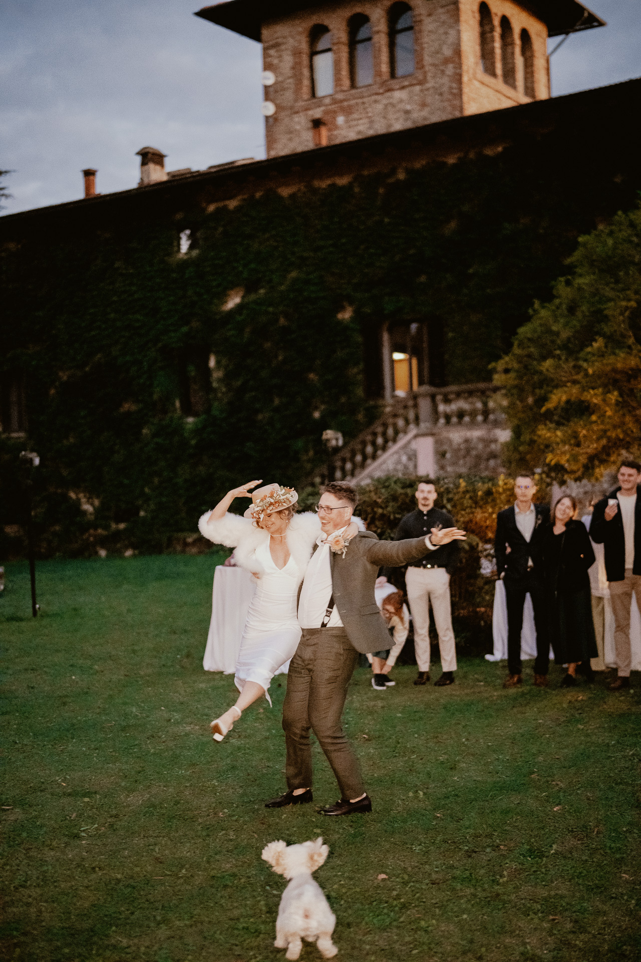 “Greta and Kristian: a love as vibrant and joyful as the day they celebrated it. Their wedding was a true reflection of their personalities—fun, carefree, and full of life. Set in the heart of Tuscany, in a charming villa surrounded by nature, the day was a perfect blend of rustic charm and unforgettable laughter. With hay bales, twinkling lights, and an atmosphere brimming with joy, every moment was a reminder that love is meant to be celebrated with all the fun and freedom of a true country affair. It wasn’t just a wedding—it was a lively party, a celebration of life and love, filled with dancing, laughter, and memories that will last forever.”