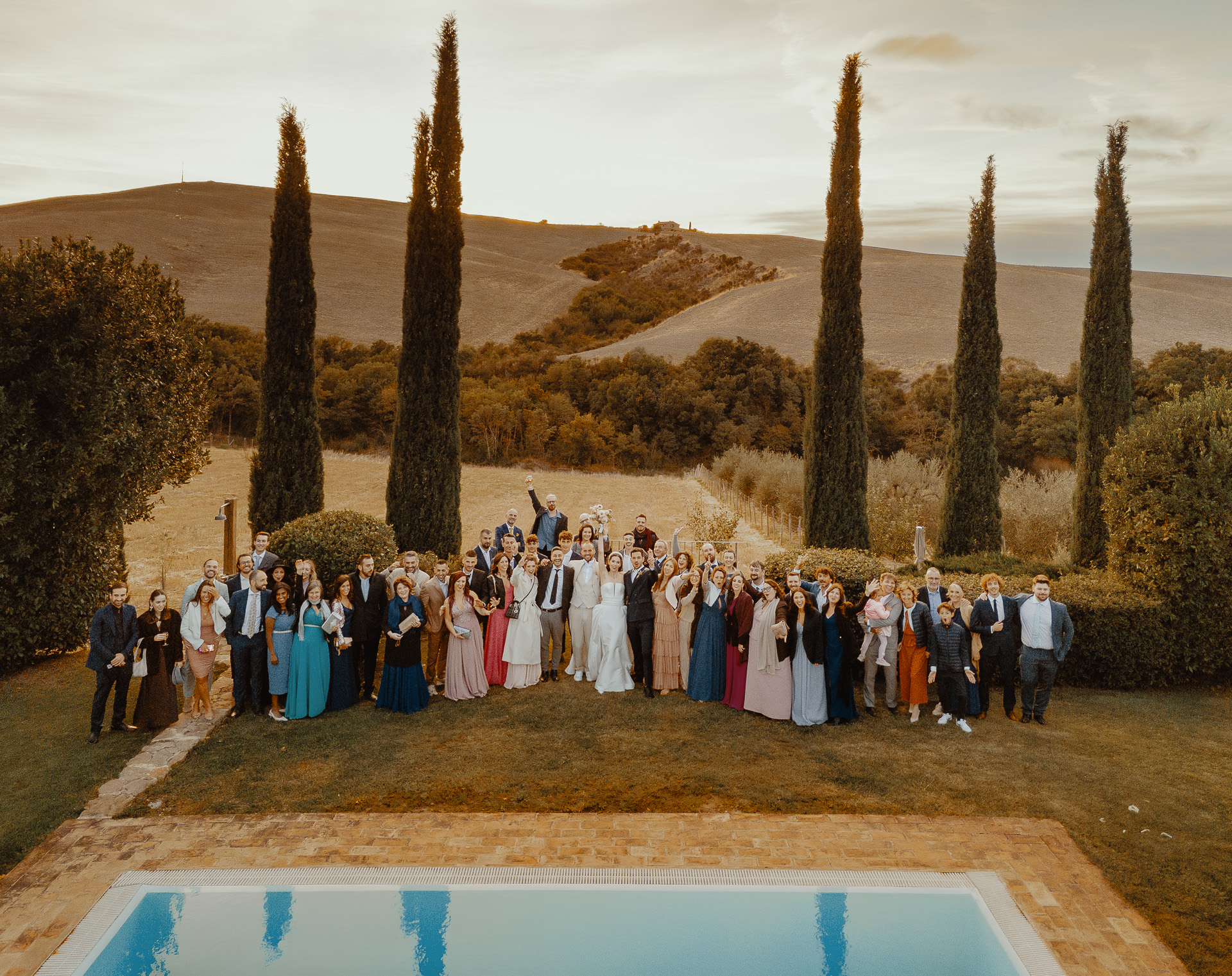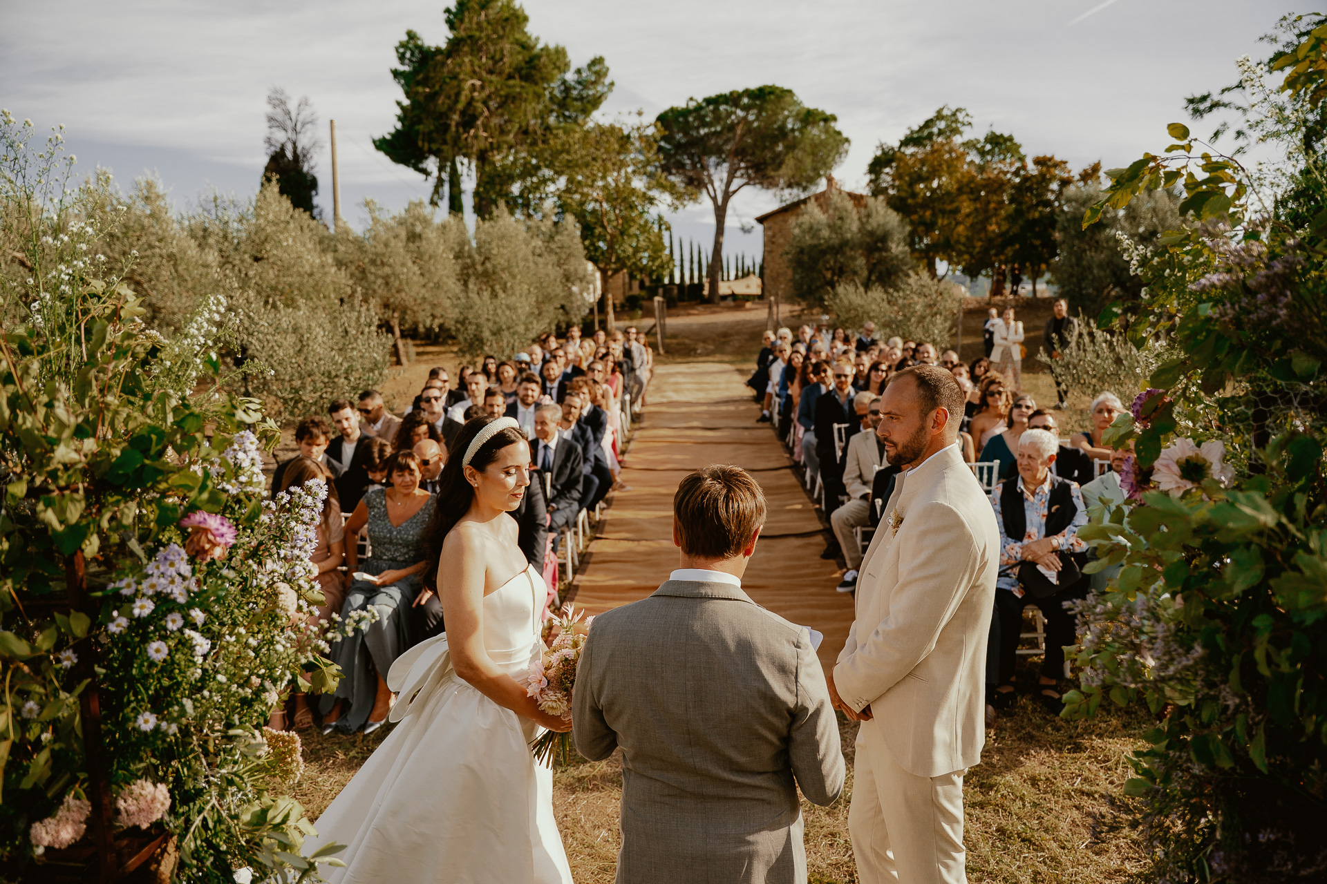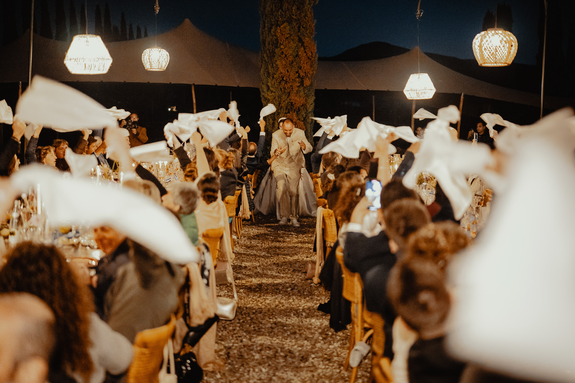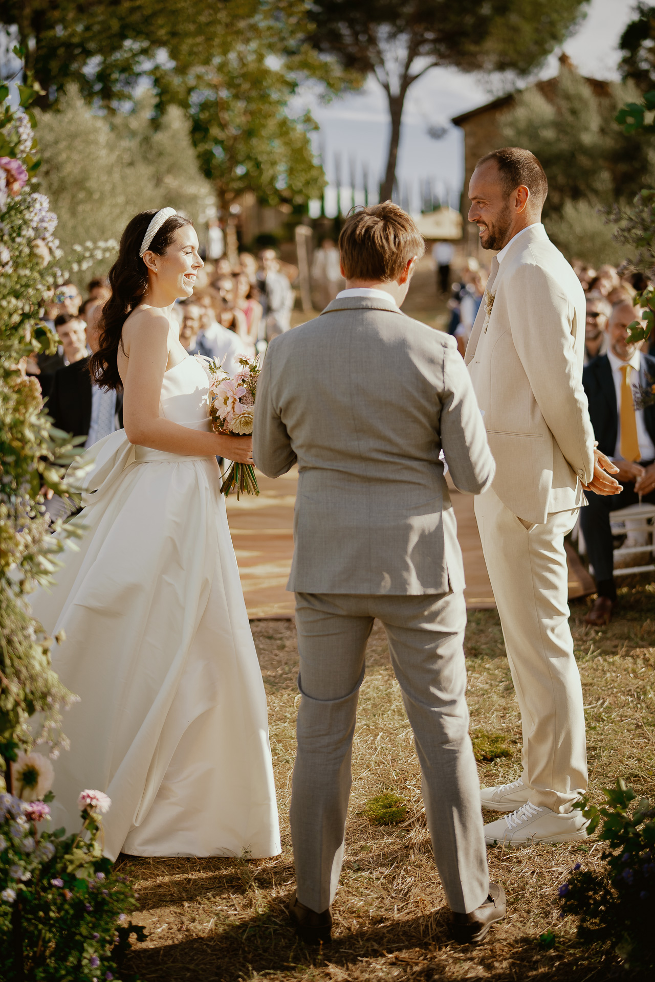 The atmosphere was nothing short of magical. Bathed in soft Tuscan light, guests gathered in a setting that felt like a hidden fairytale — peaceful, open, and profoundly alive. Every moment, from the tearful vows to the joy-filled toasts, was charged with intensity and beauty.