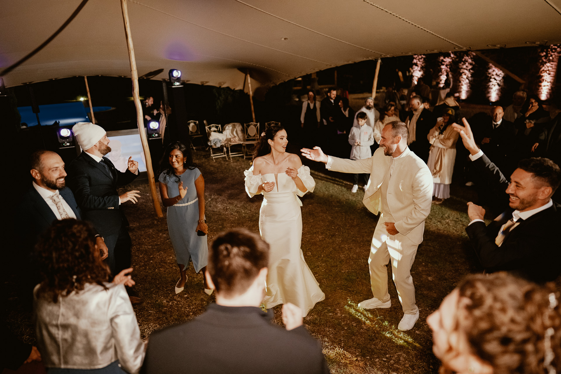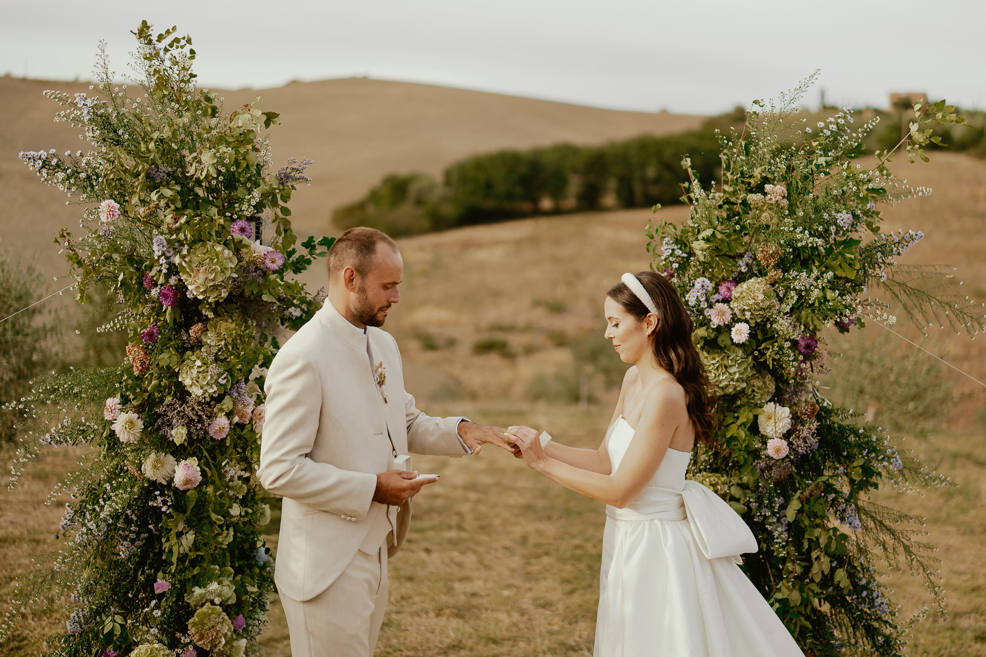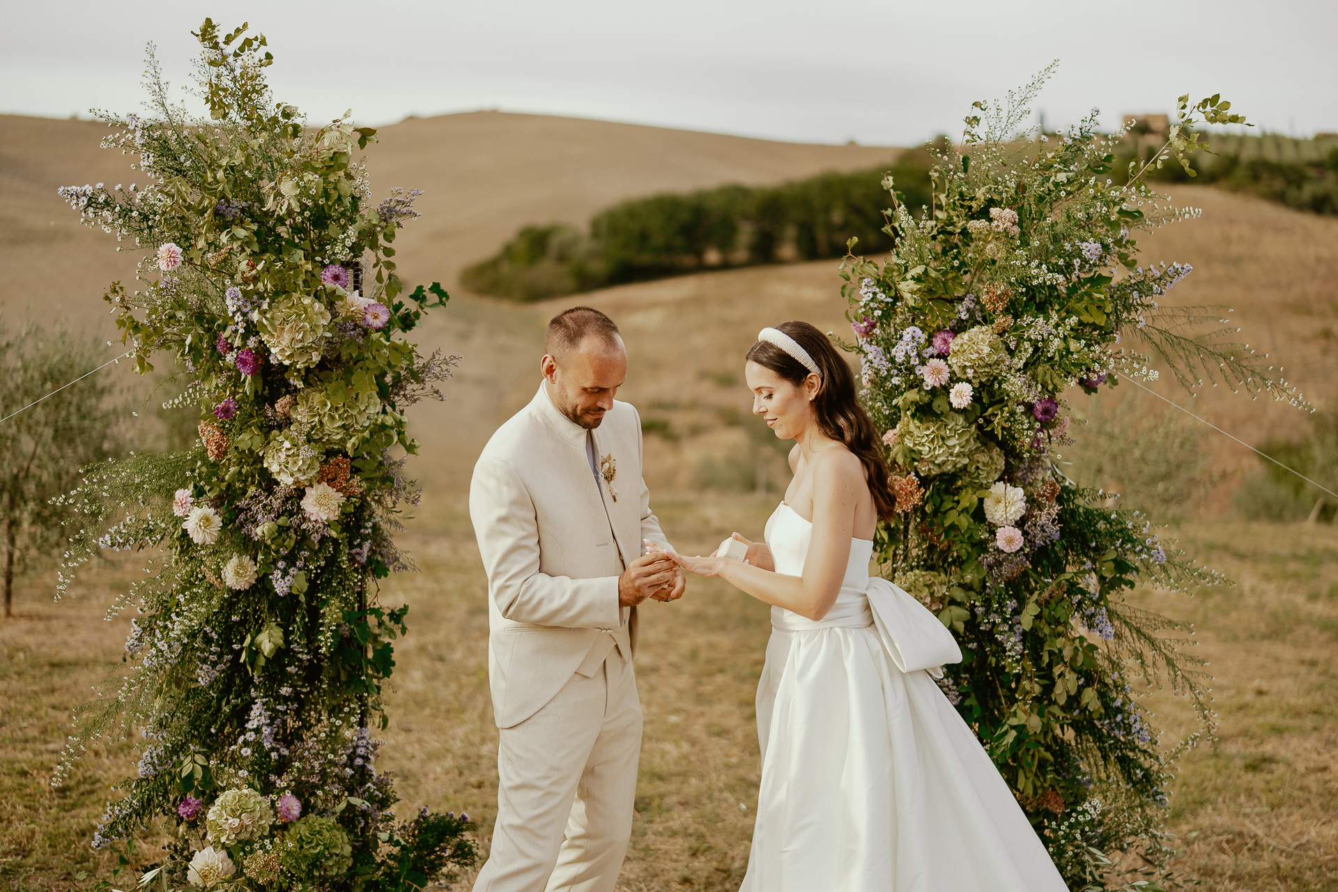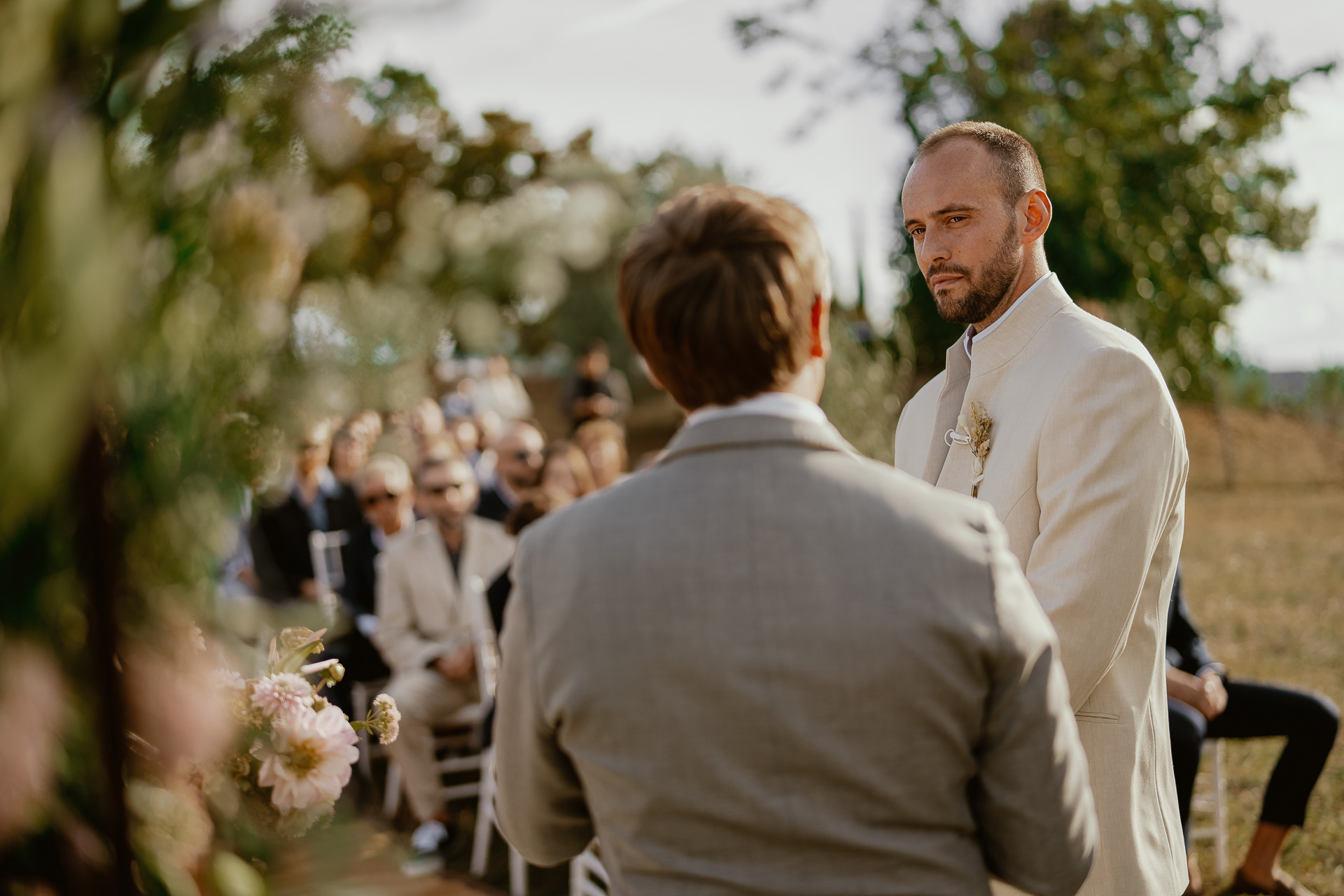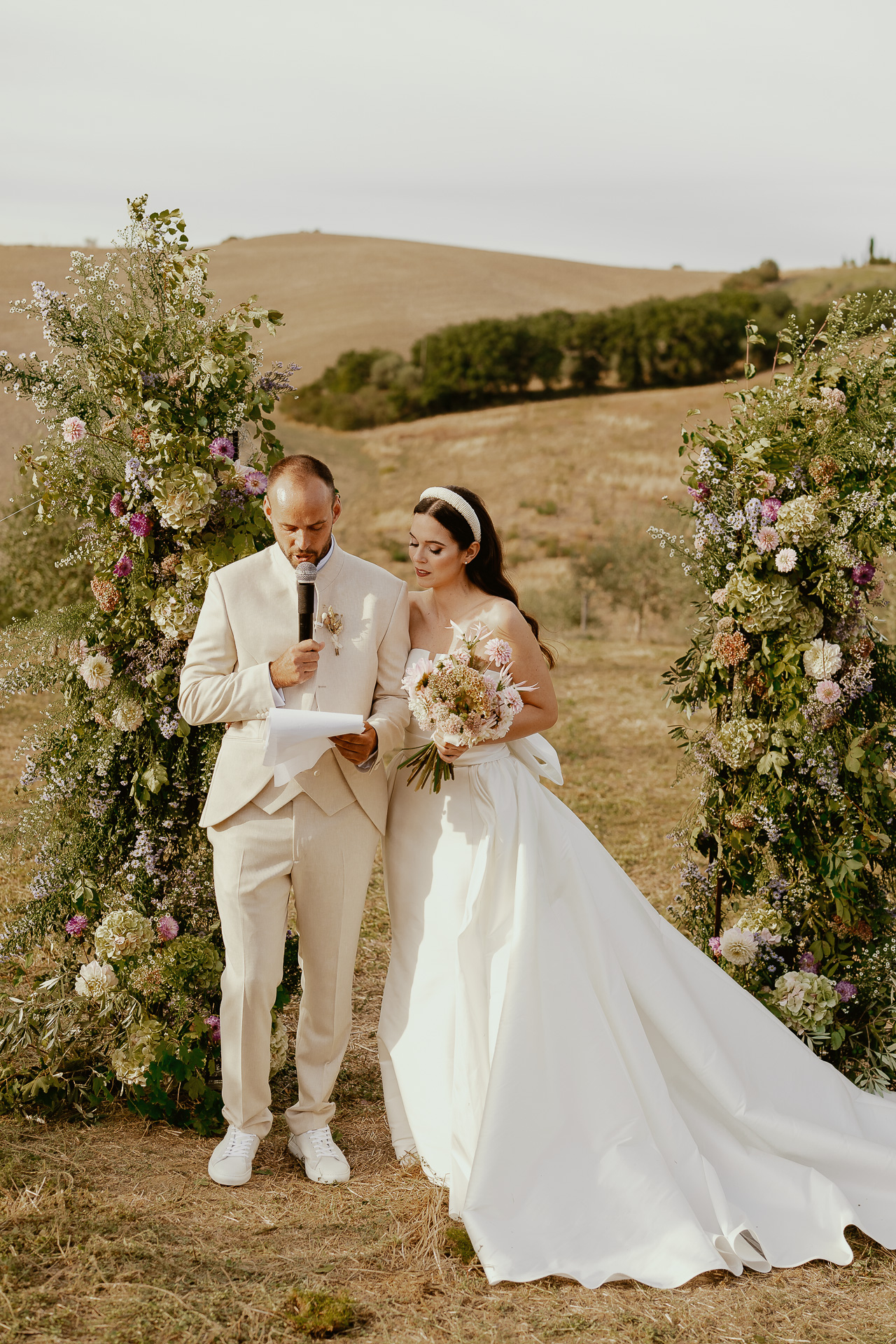 The atmosphere was nothing short of magical. Bathed in soft Tuscan light, guests gathered in a setting that felt like a hidden fairytale — peaceful, open, and profoundly alive. Every moment, from the tearful vows to the joy-filled toasts, was charged with intensity and beauty.