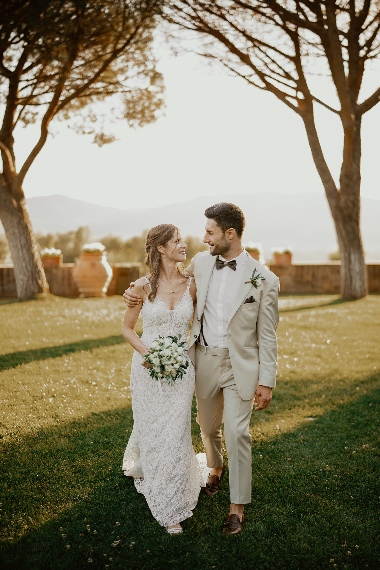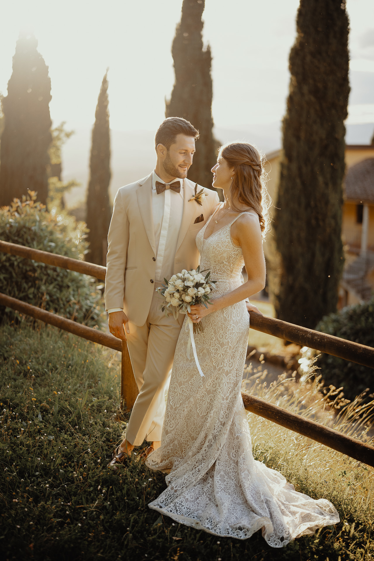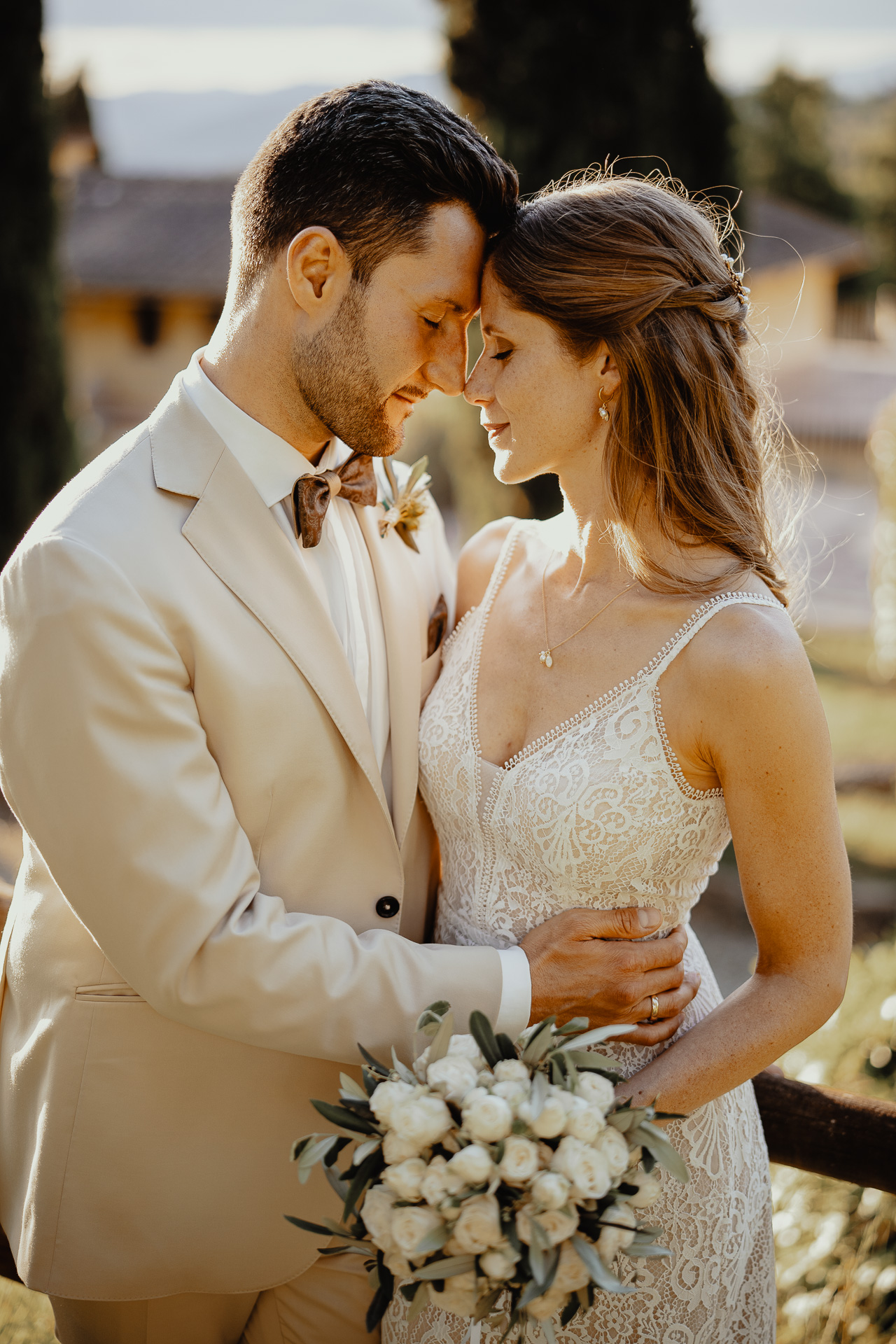 “Susy and Jacob: a love rooted in elegance, yet with a playful spirit that made their wedding day unforgettable. Coming all the way from Germany, they celebrated their union in the most beautiful Tuscan villa, under the warmth of the sun and the soft embrace of perfect clouds. Their day was a perfect mix of classic sophistication and spontaneous joy. Surrounded by breathtaking views, they exchanged vows with grace and charm, and Susy, radiant in her stunning dress, looked every bit the vision of beauty. But beyond the elegance, it was their laughter, the twinkling moments of joy, and their easy-going kindness that truly made the day magical. It was a celebration of love, style, and the joy of being together.”