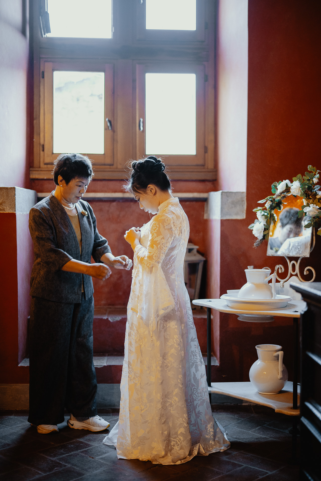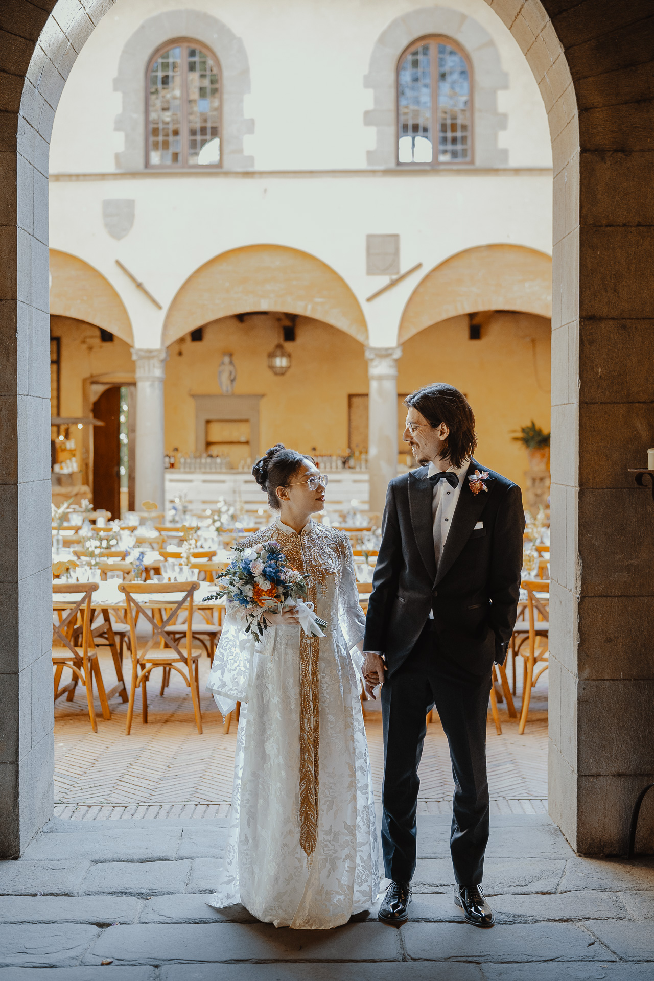 Nestled in the rolling hills just outside Florence, Castello Il Palagio was the fairytale setting for Ting and Lorenzo’s unforgettable wedding. With centuries of history behind its stone walls, this majestic Tuscan castle welcomed guests from around the world for a day full of emotion, beauty, and tradition.