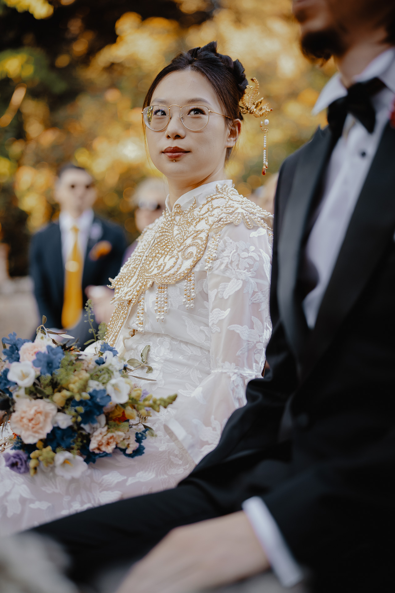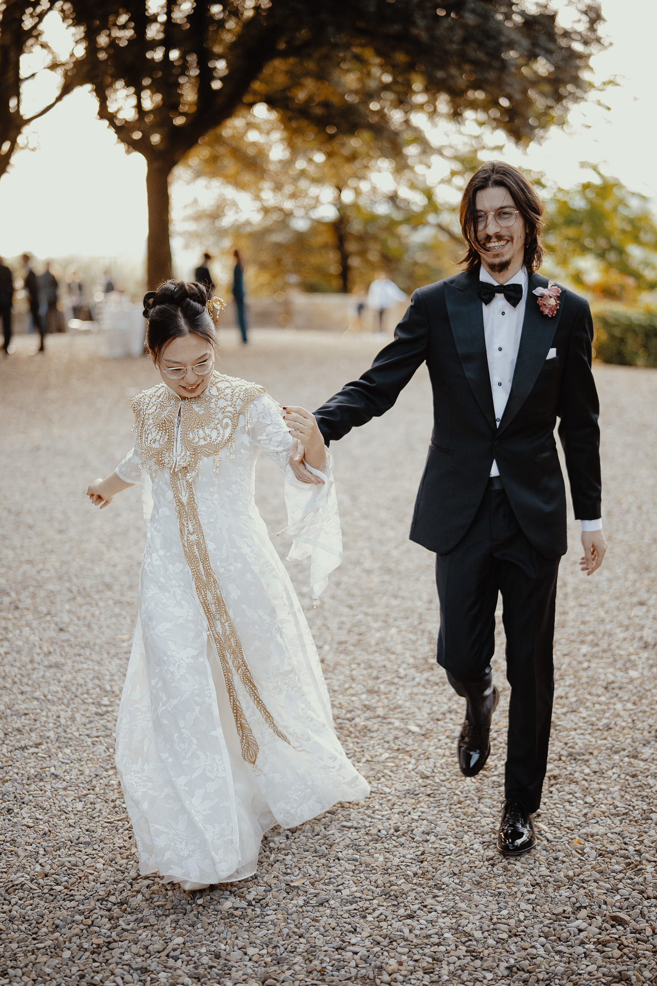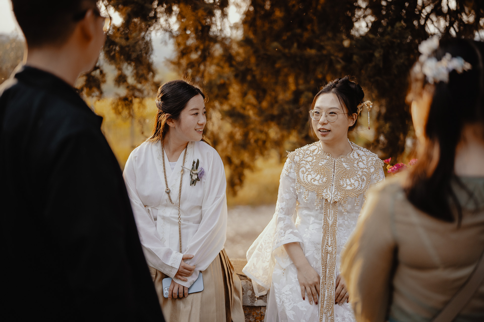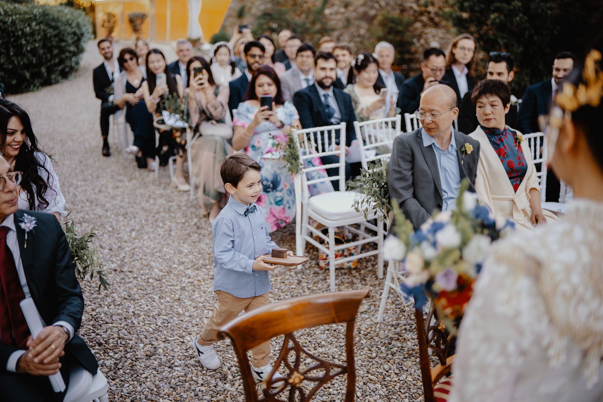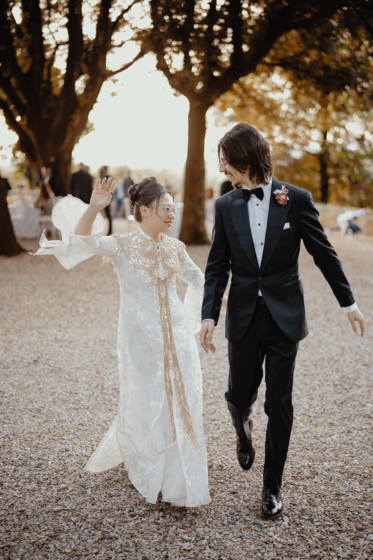 Ting, originally from China, and Lorenzo, an Italian living in London, brought together two cultures in the most elegant and heartfelt way. The ceremony took place beneath a breathtaking centuries-old tree — a natural cathedral filled with light and meaning. One of the most touching moments was the traditional tea ceremony, a beautiful homage to Ting’s heritage, shared in front of their closest loved ones.