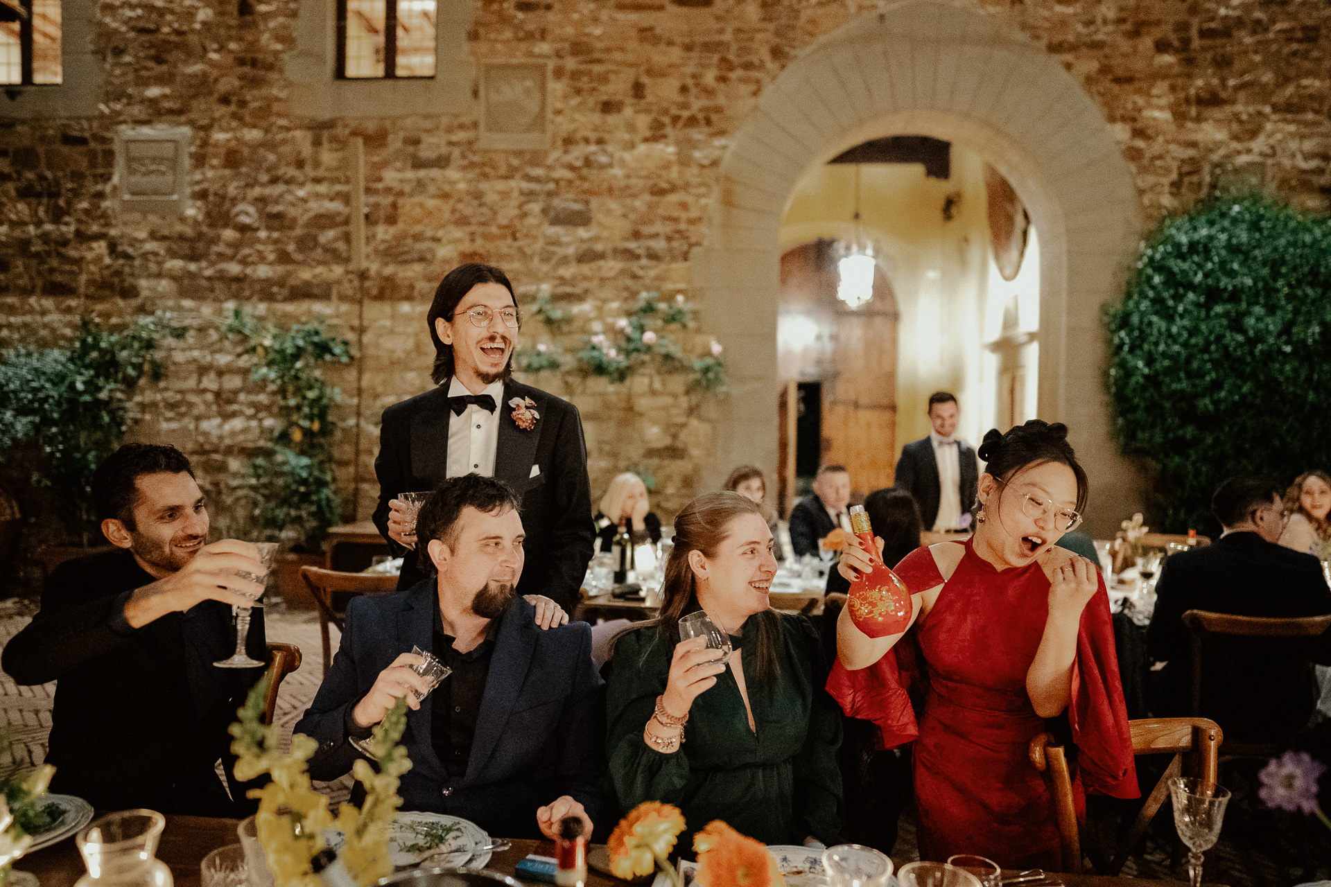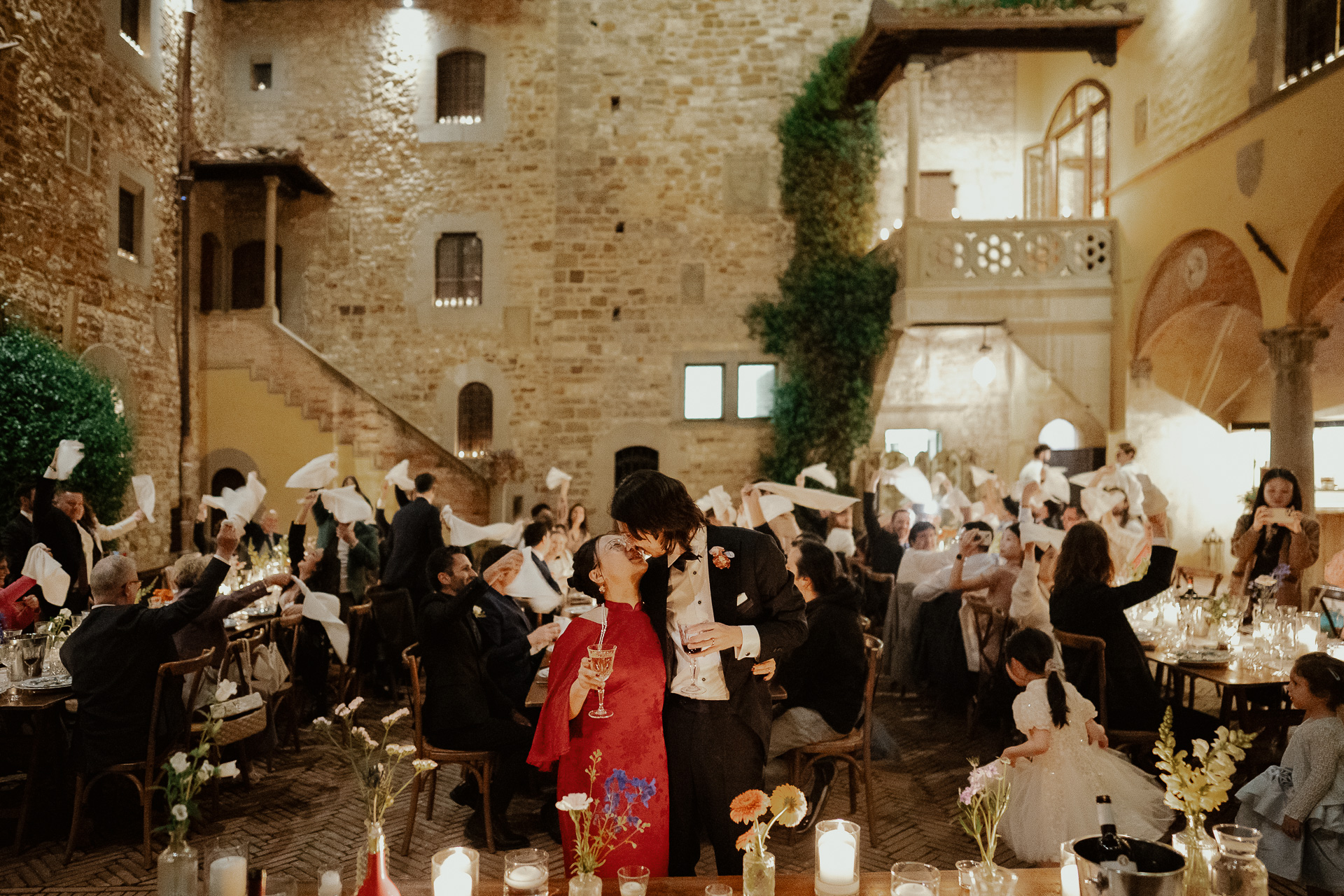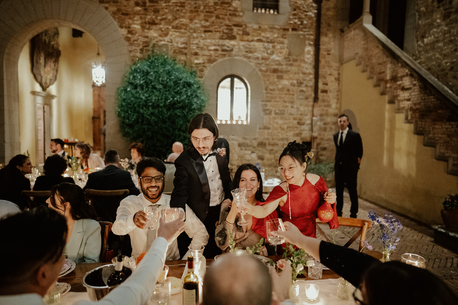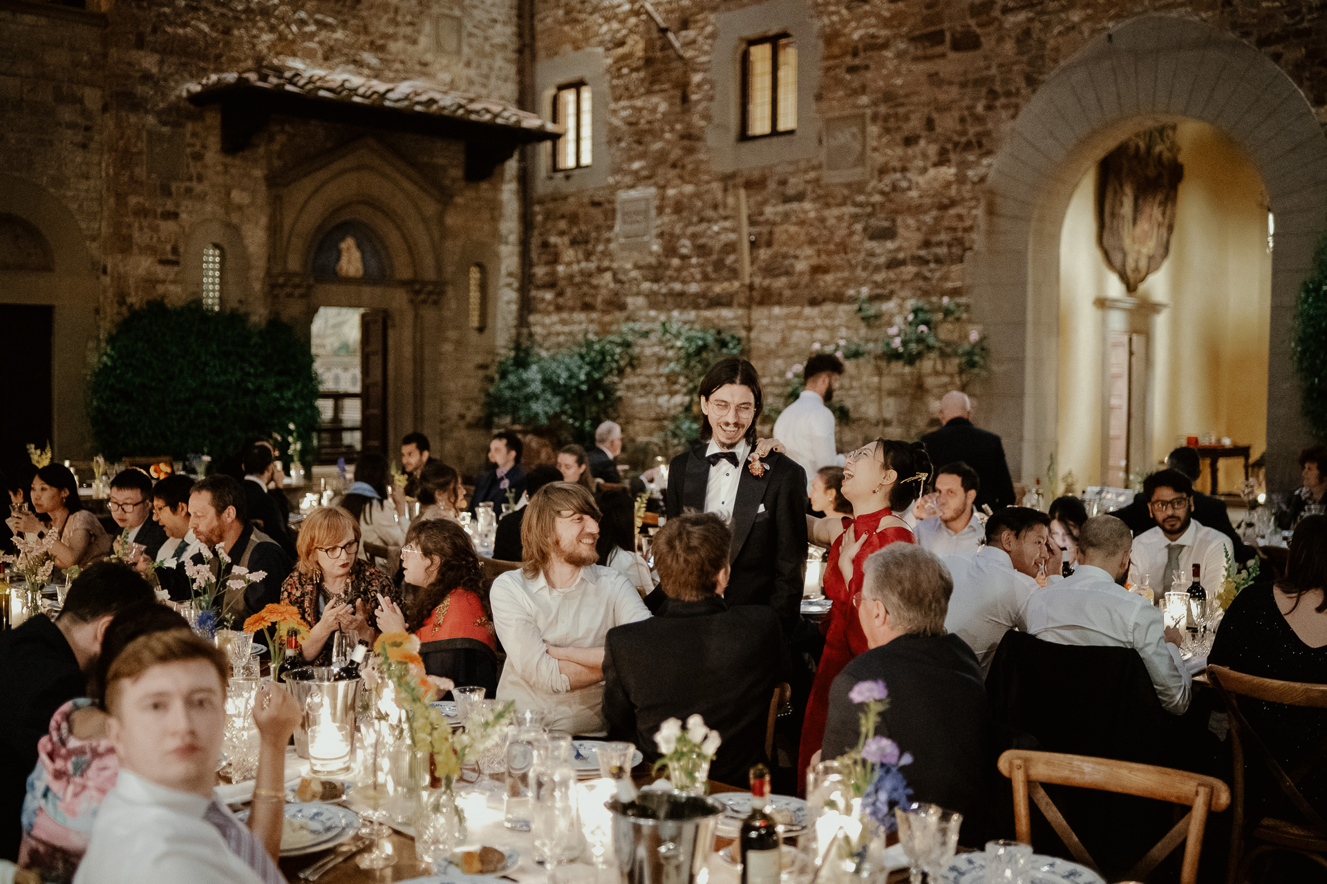 The atmosphere was truly international, joyful, and deeply emotional. From heartfelt speeches to spontaneous laughter, every detail — from the floral design to the panoramic views — contributed to a celebration that was both refined and full of life. A perfect fusion of past and present, tradition and modernity, wrapped in the timeless charm of Tuscany.