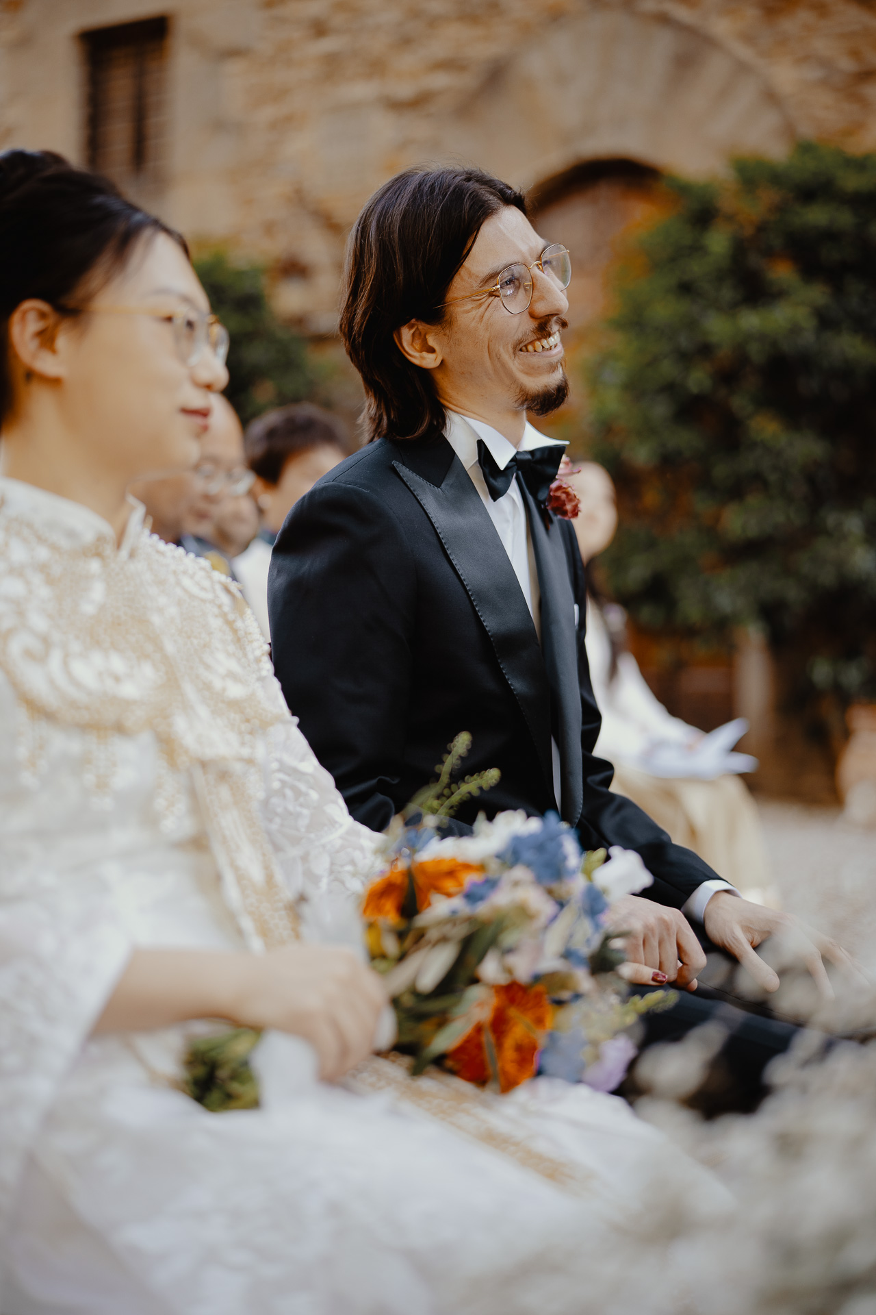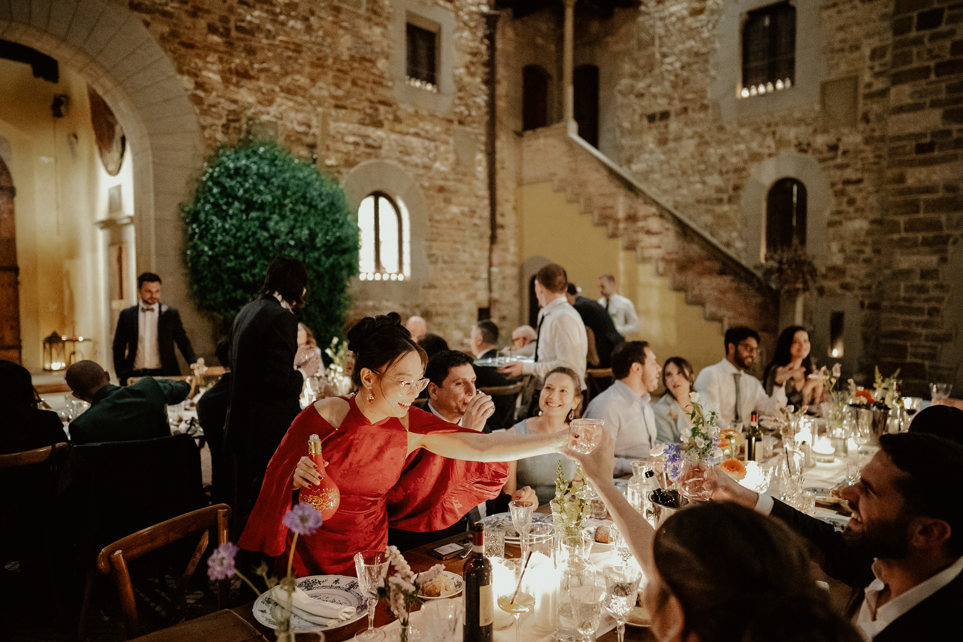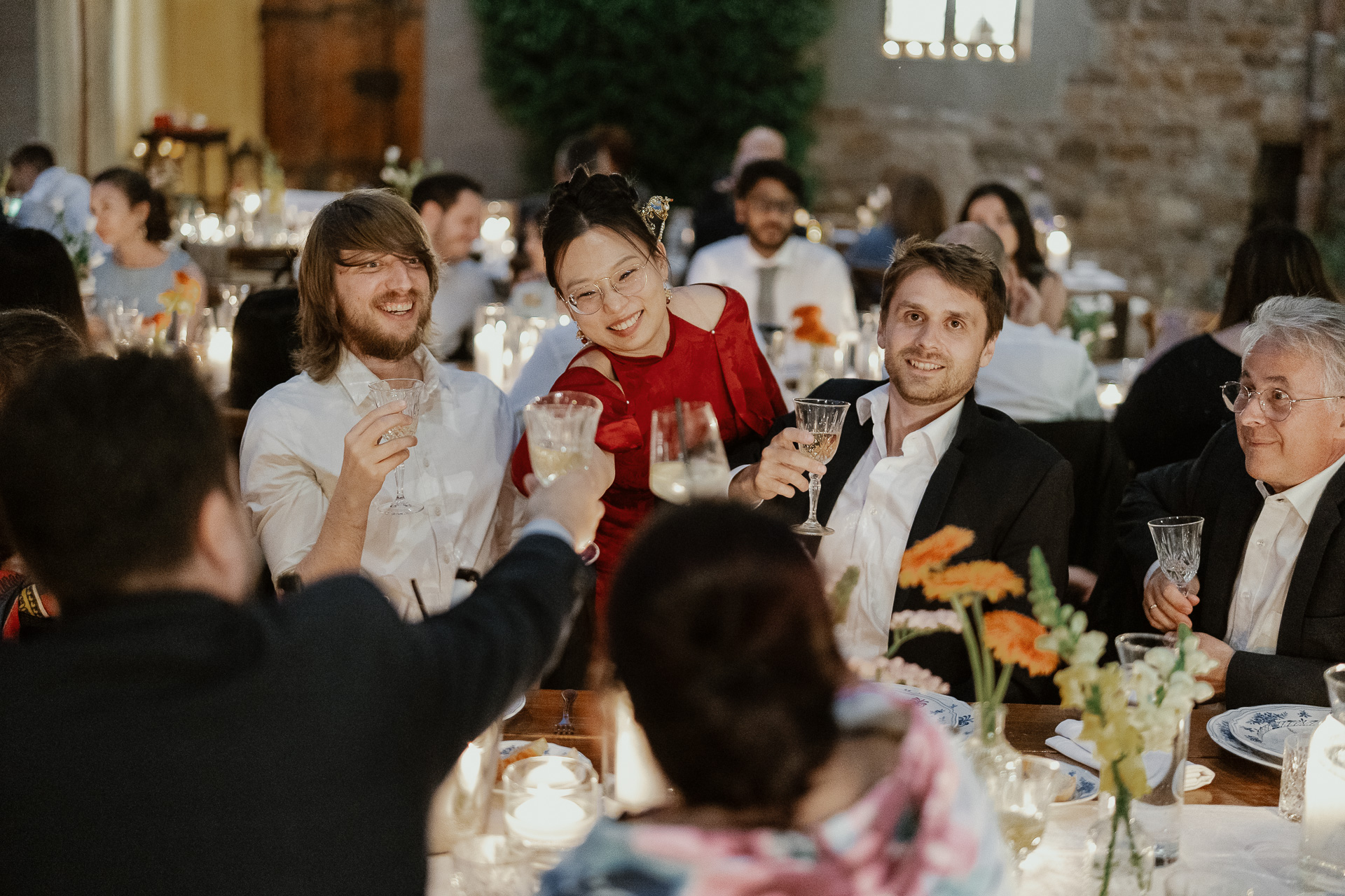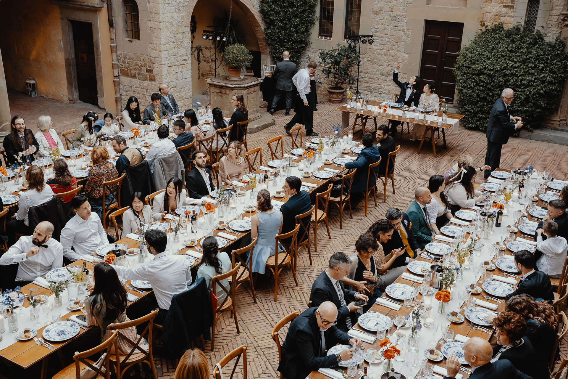 The atmosphere was truly international, joyful, and deeply emotional. From heartfelt speeches to spontaneous laughter, every detail — from the floral design to the panoramic views — contributed to a celebration that was both refined and full of life. A perfect fusion of past and present, tradition and modernity, wrapped in the timeless charm of Tuscany.