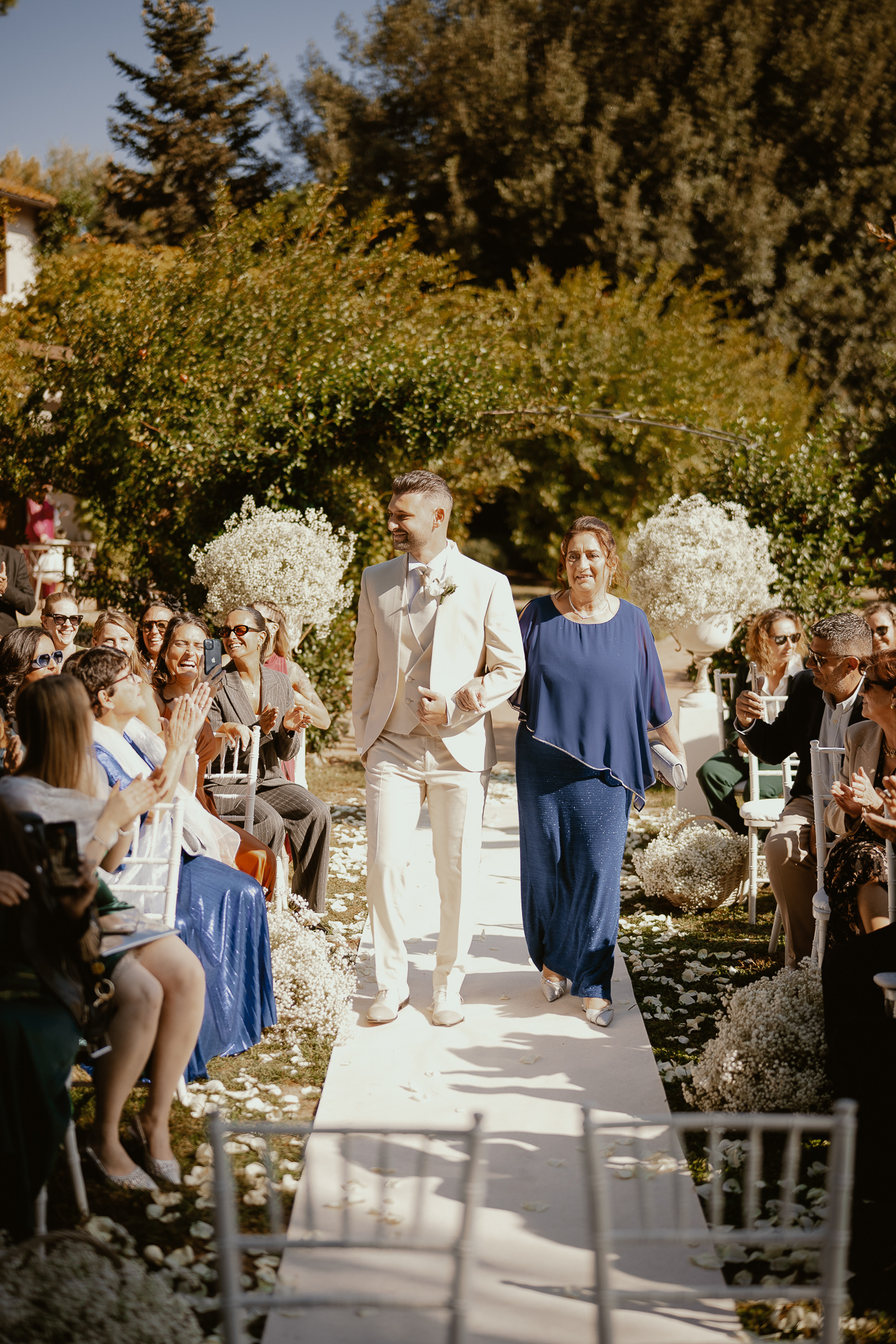 Erica and Leonardo chose Antico Borgo di Sutri, in the heart of the Tuscia near Viterbo, to celebrate their love. She, breathtaking in a unique and refined gown, radiated timeless beauty; he, dressed in light tones, looked elegant and effortlessly charming beside her. Together, they were simply stunning.